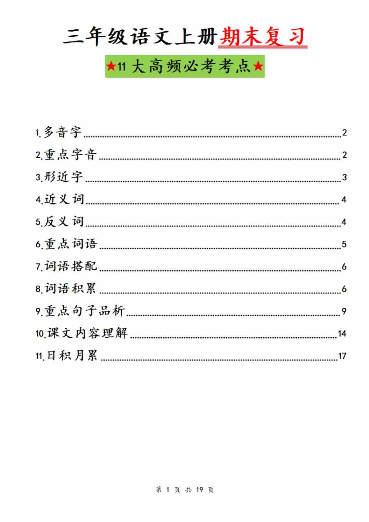 三上语文【期末复习-11大高频必考考点】
