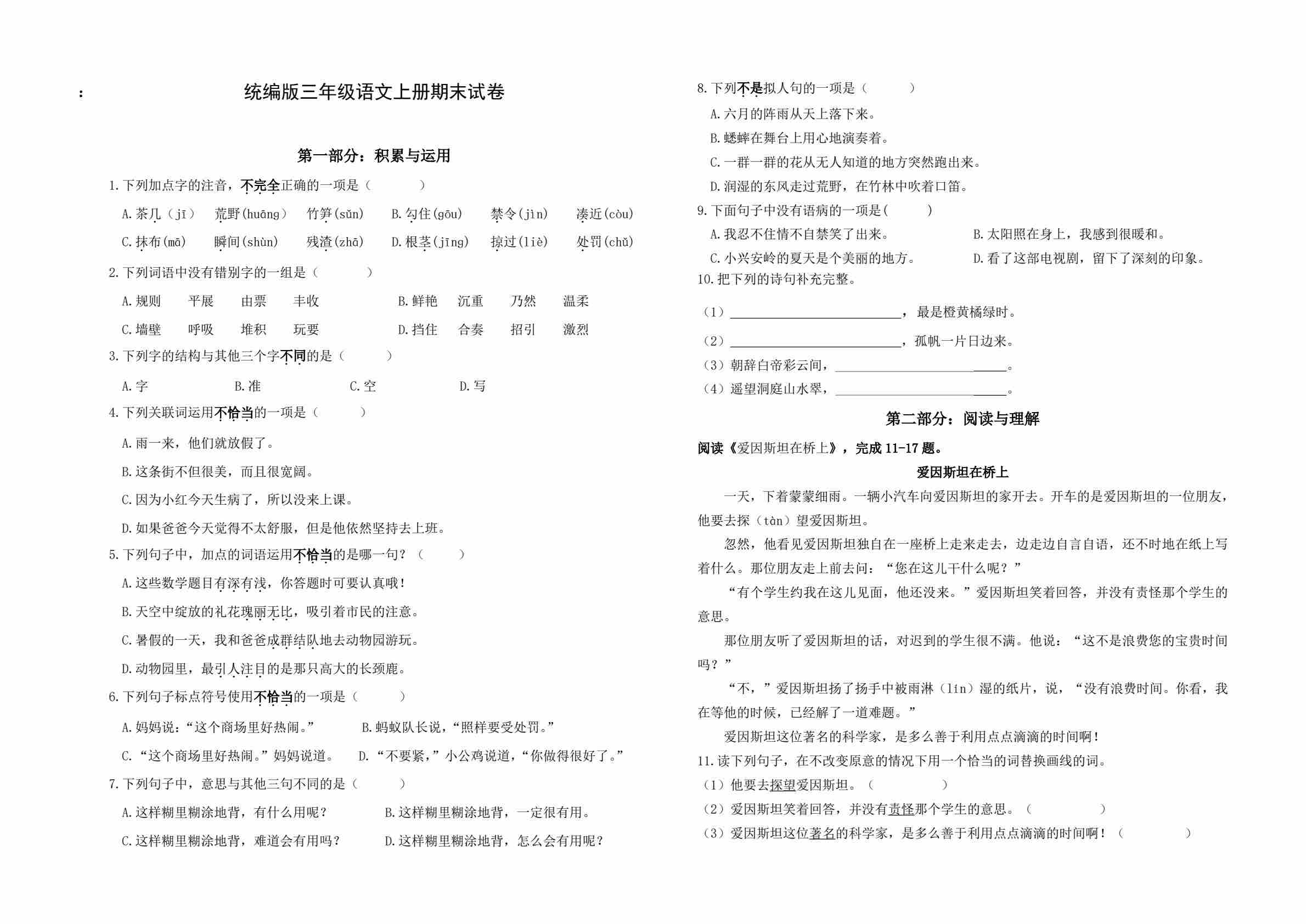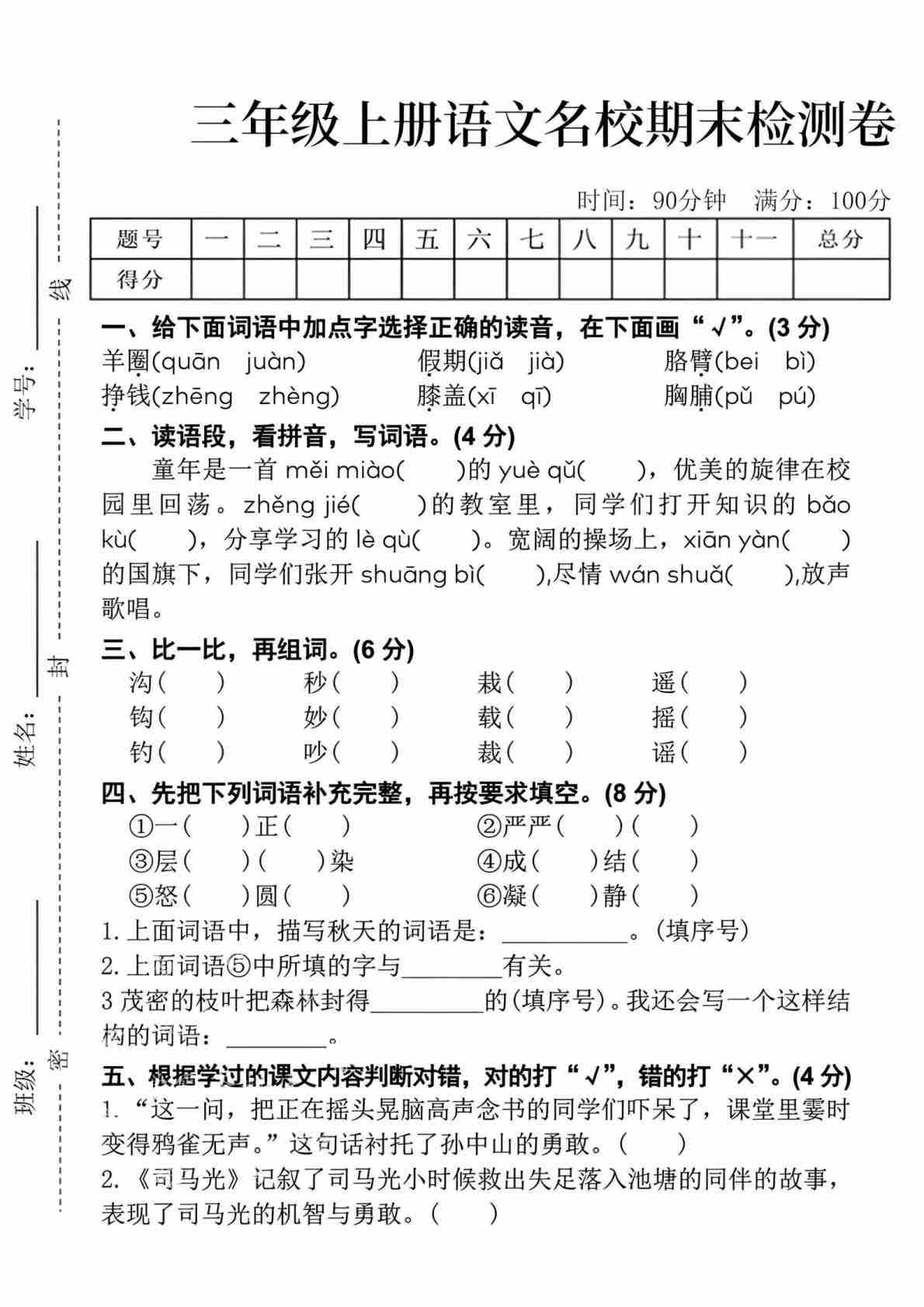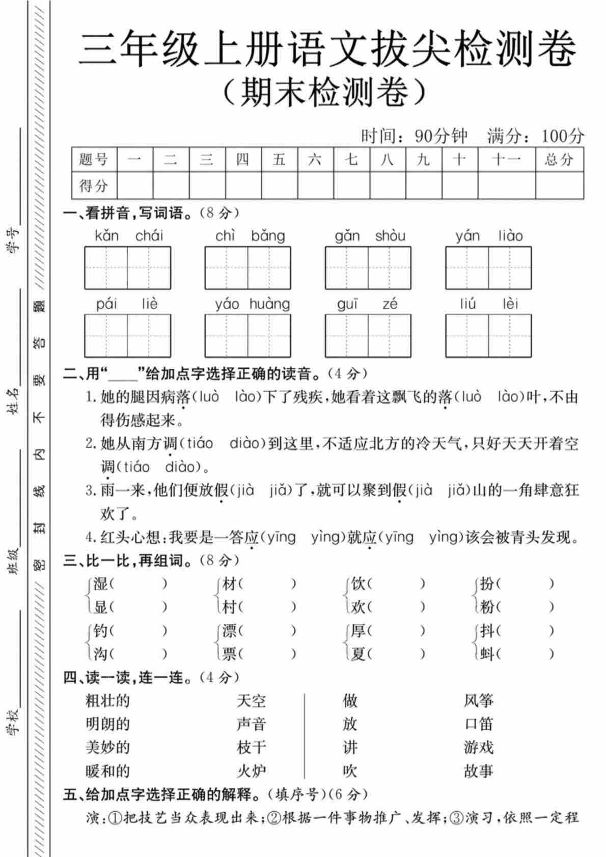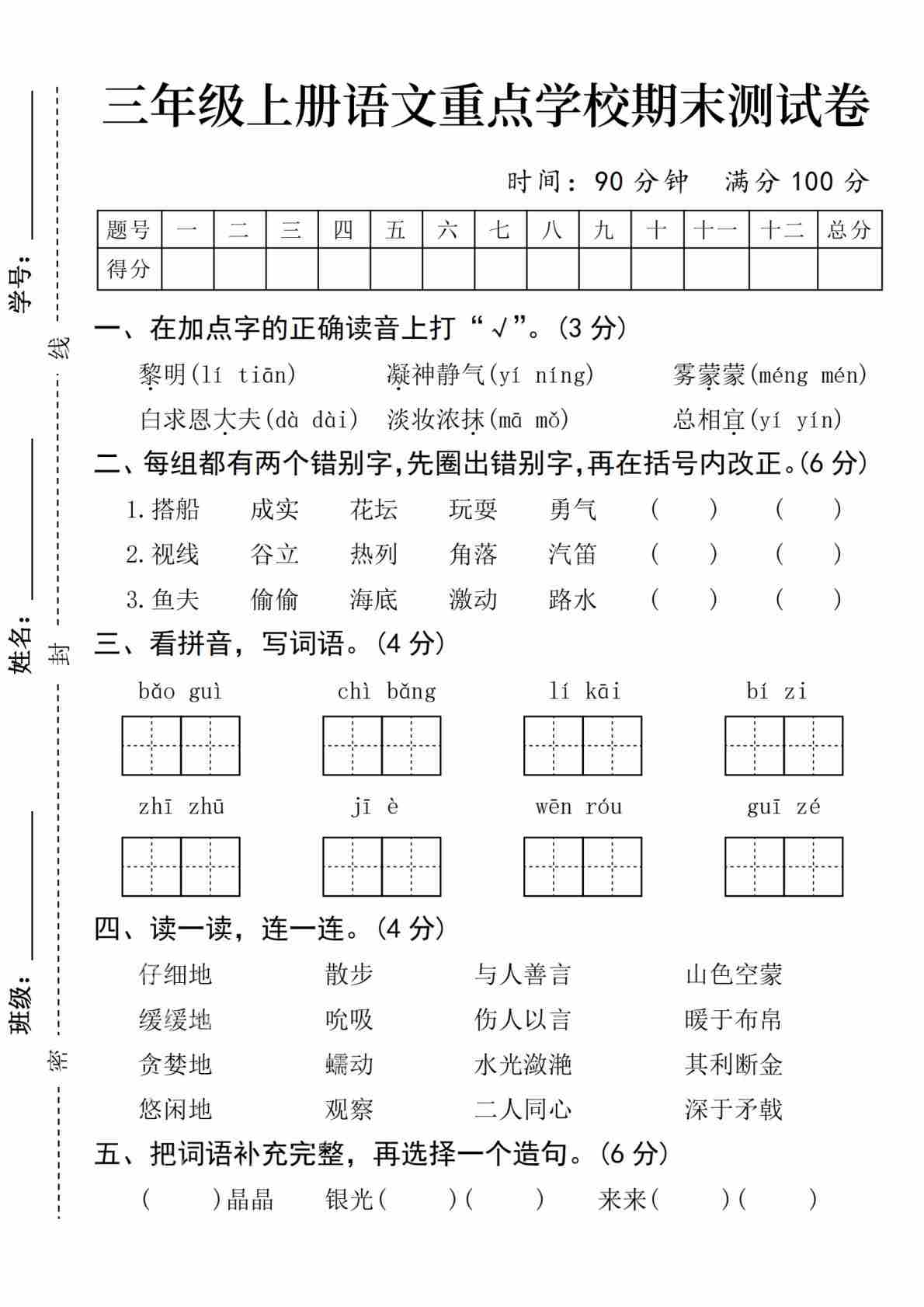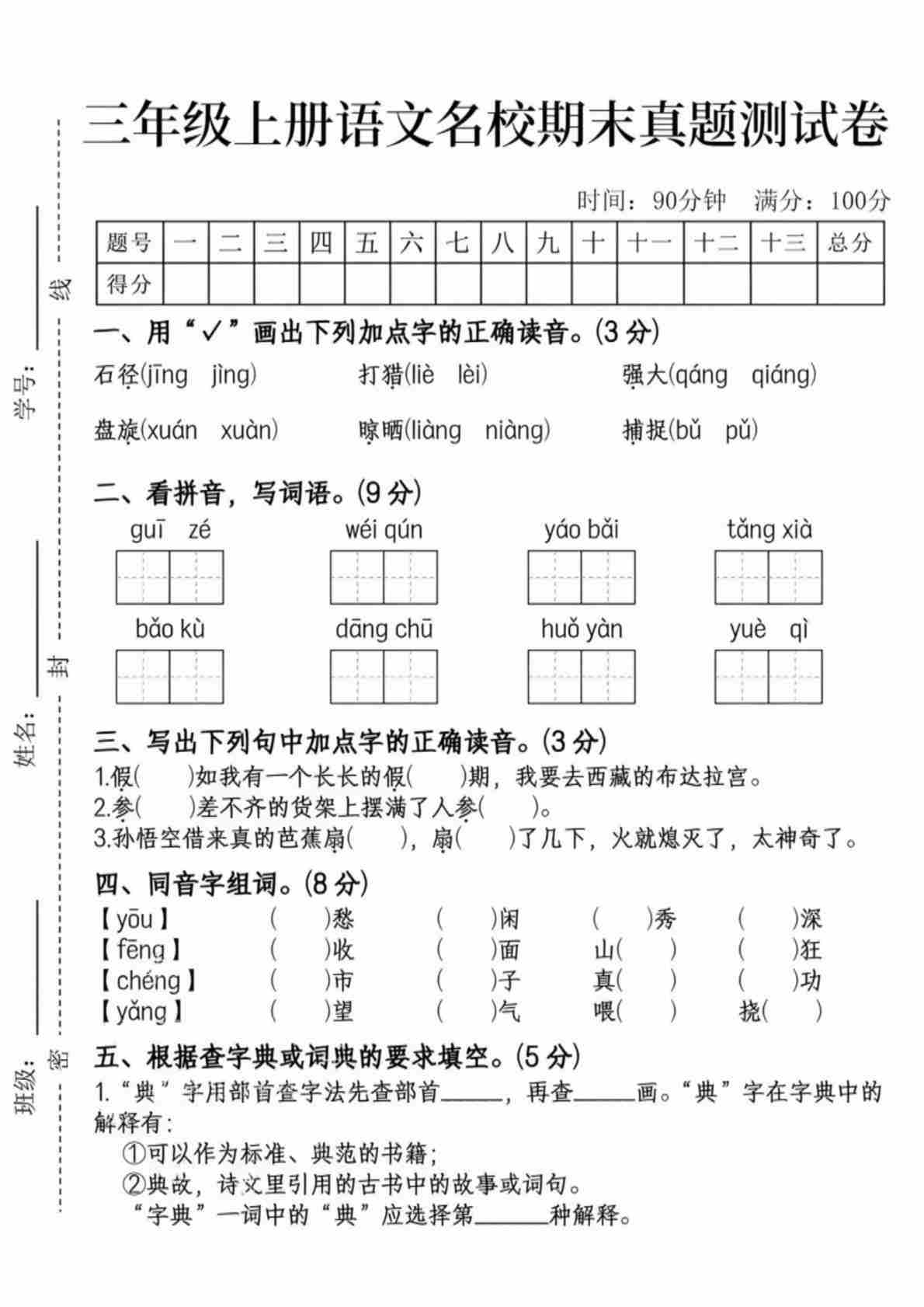 三上语文【期末全真模拟基础卷(答题卡)】5