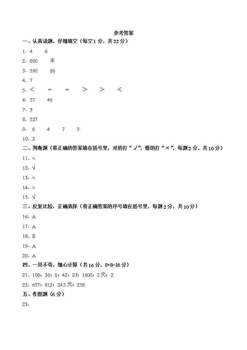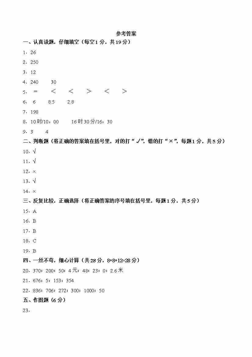 三上北师大版数学【期末拔尖测试卷3】