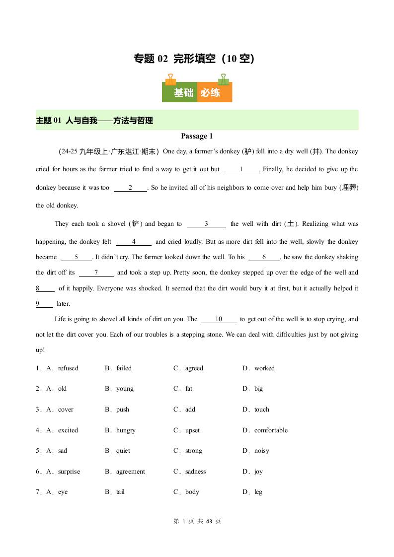 九上英语人教专题02 完形填空(10空)(期末真题汇编)(解析版)