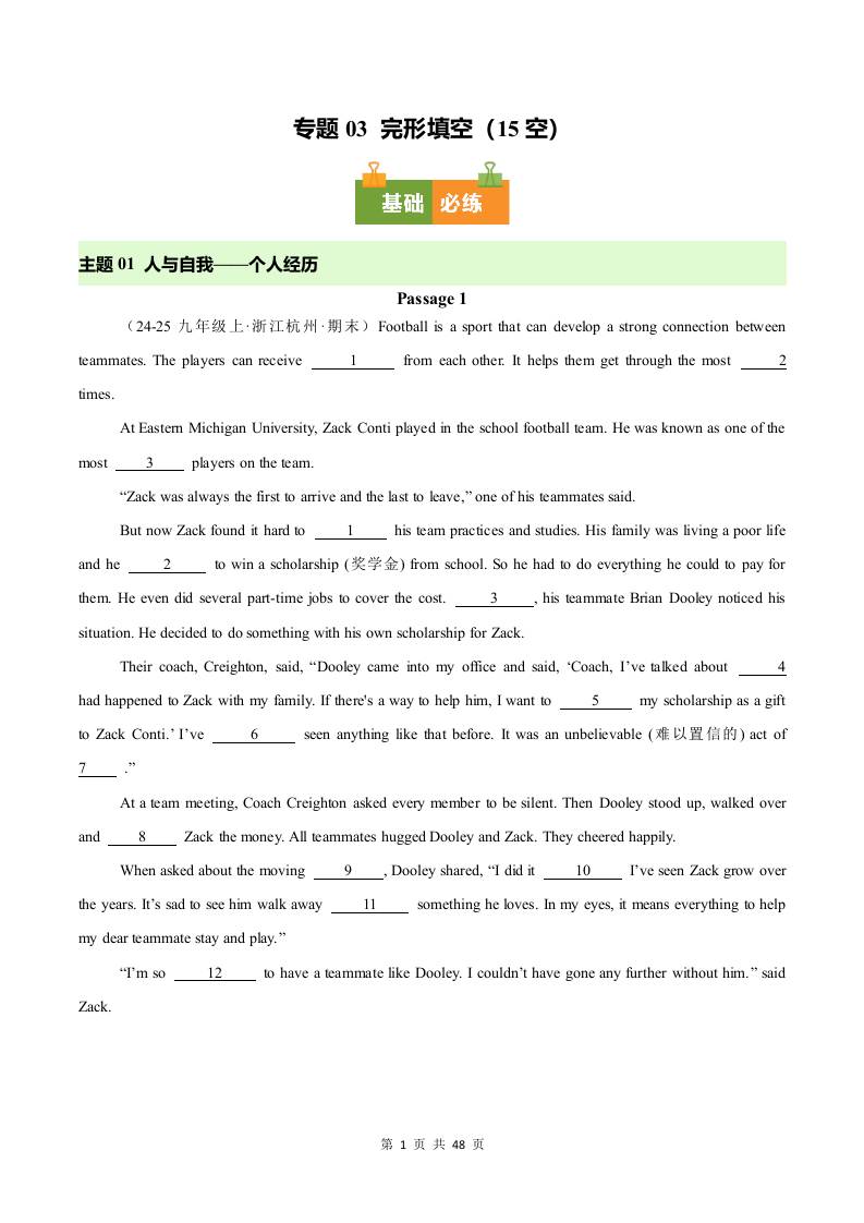 九上英语人教专题03 完形填空(15空)(期末真题汇编)(解析版)