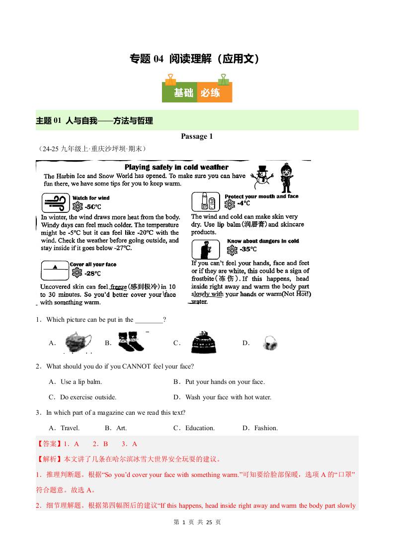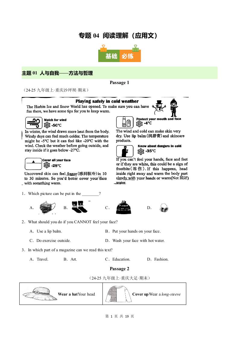 九上英语人教专题04 阅读理解(应用文)(期末真题汇编)(解析版)