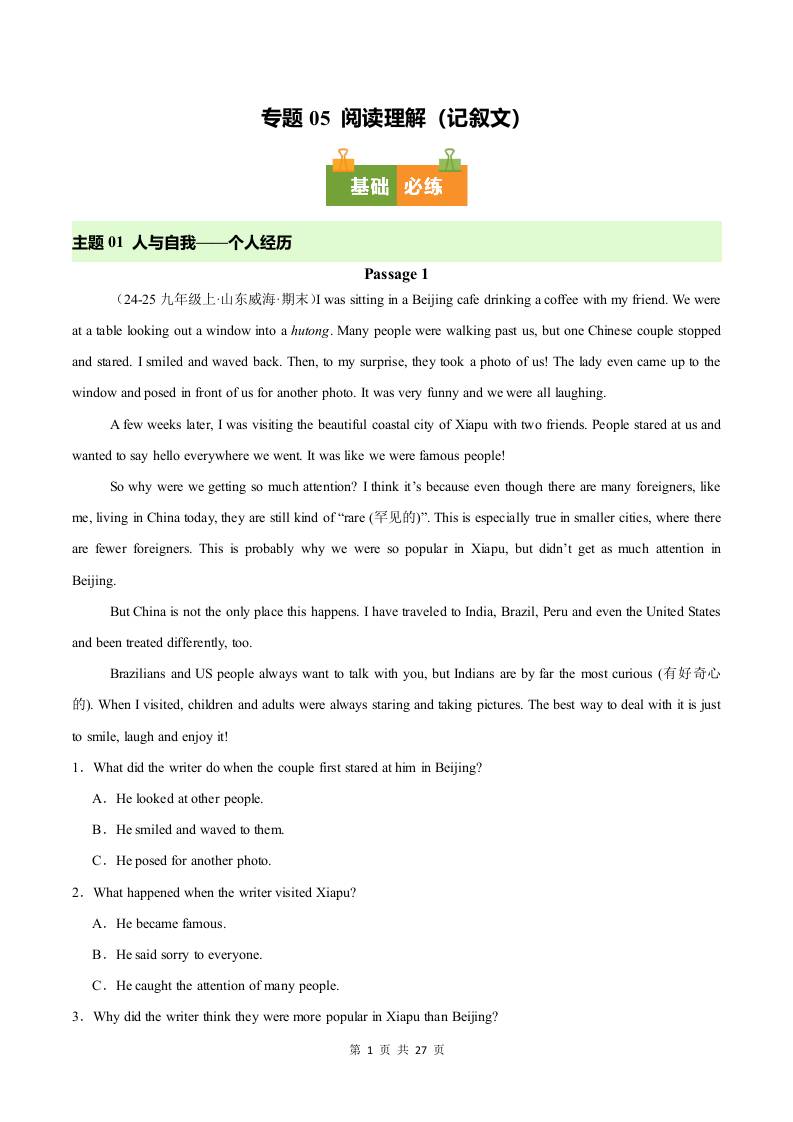 九上英语人教专题05 阅读理解(记叙文)(期末真题汇编)(原卷版)