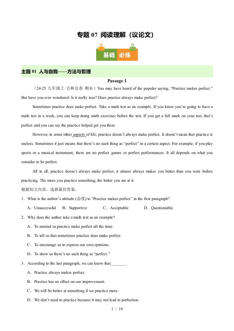 九上英语人教专题07 阅读理解(议论文)(期末真题汇编)(原卷版)