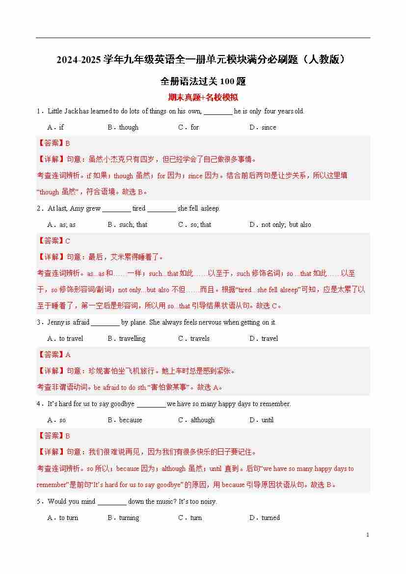 全册语法过关100题(解析版)-2024-2025学年九年级英语全一册单元模块满分必刷题(人教版)