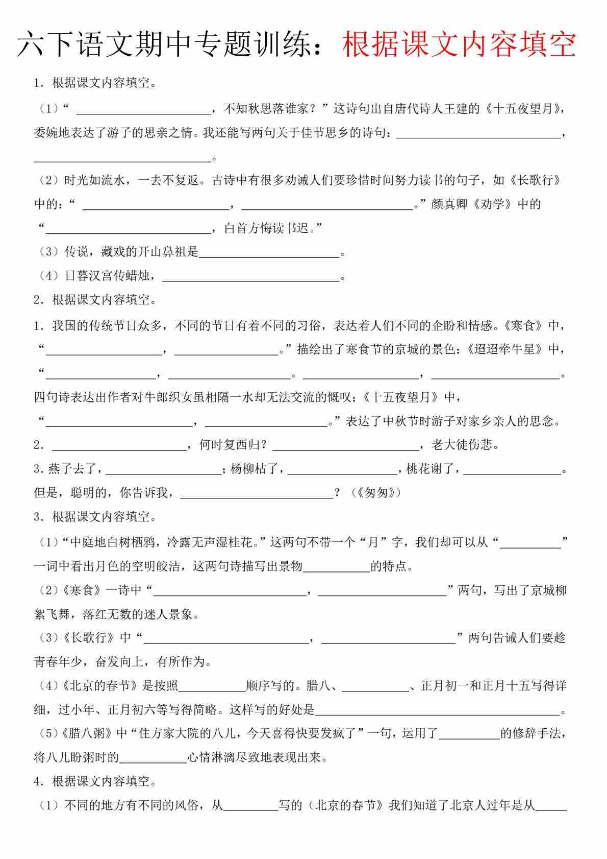 【期中根据课文内容填空】六下语文