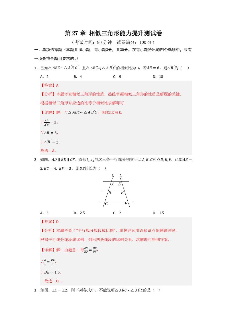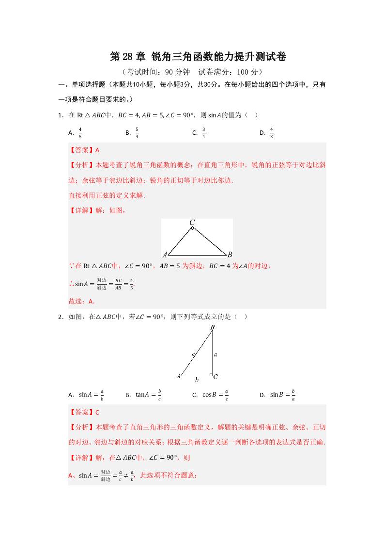 第28章 锐角三角函数能力提升测试卷(解析版)