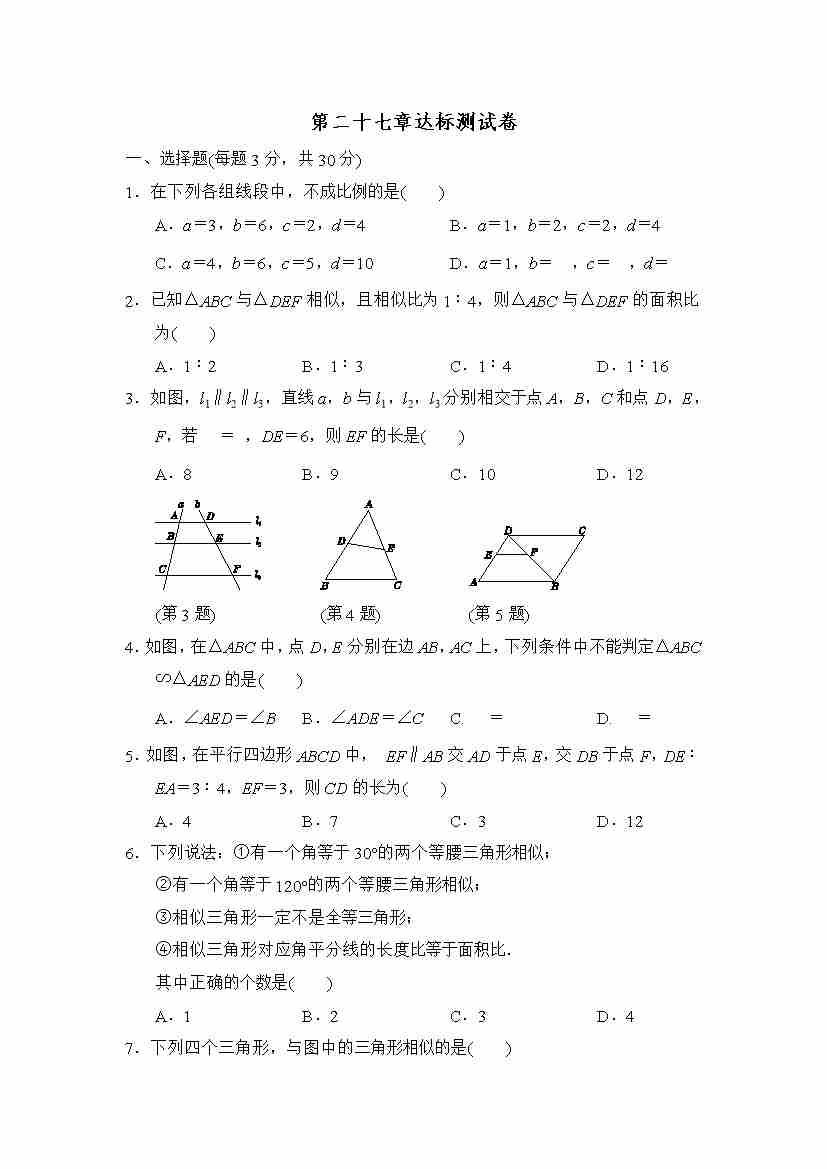 【人教】九下数学第27章达标测试卷