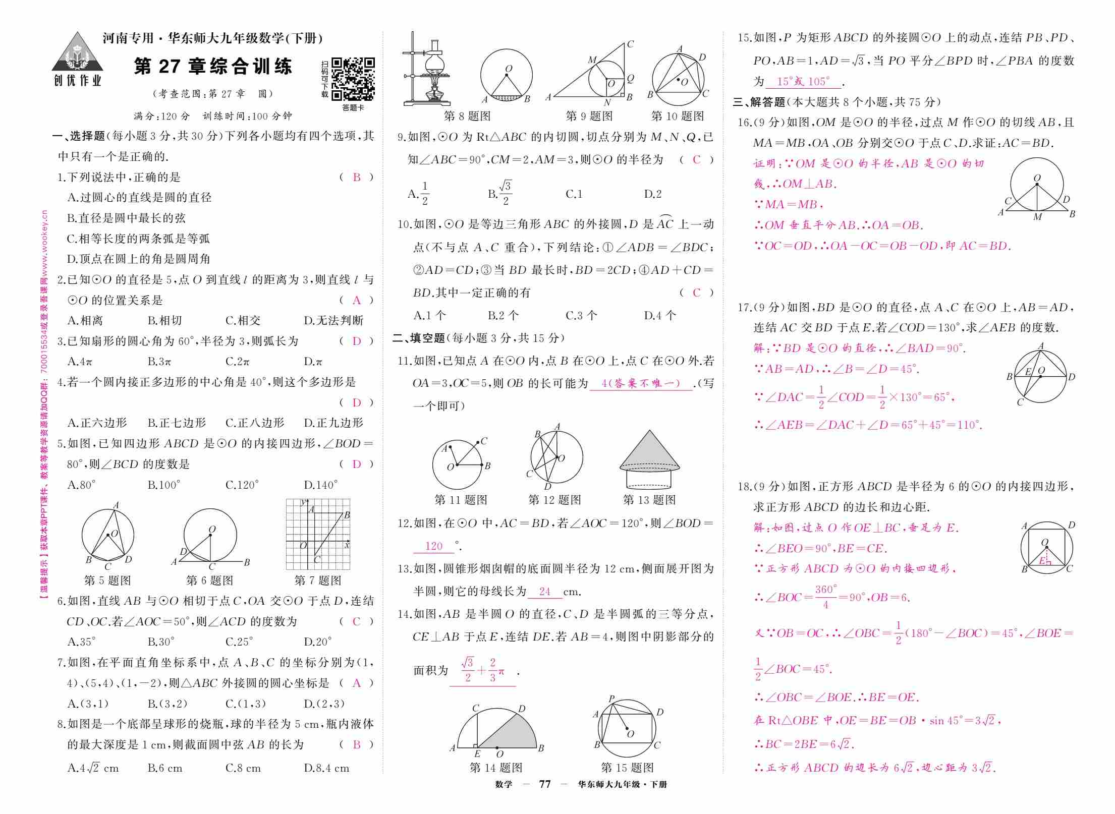 九下数学第27章圆测试(解析版)