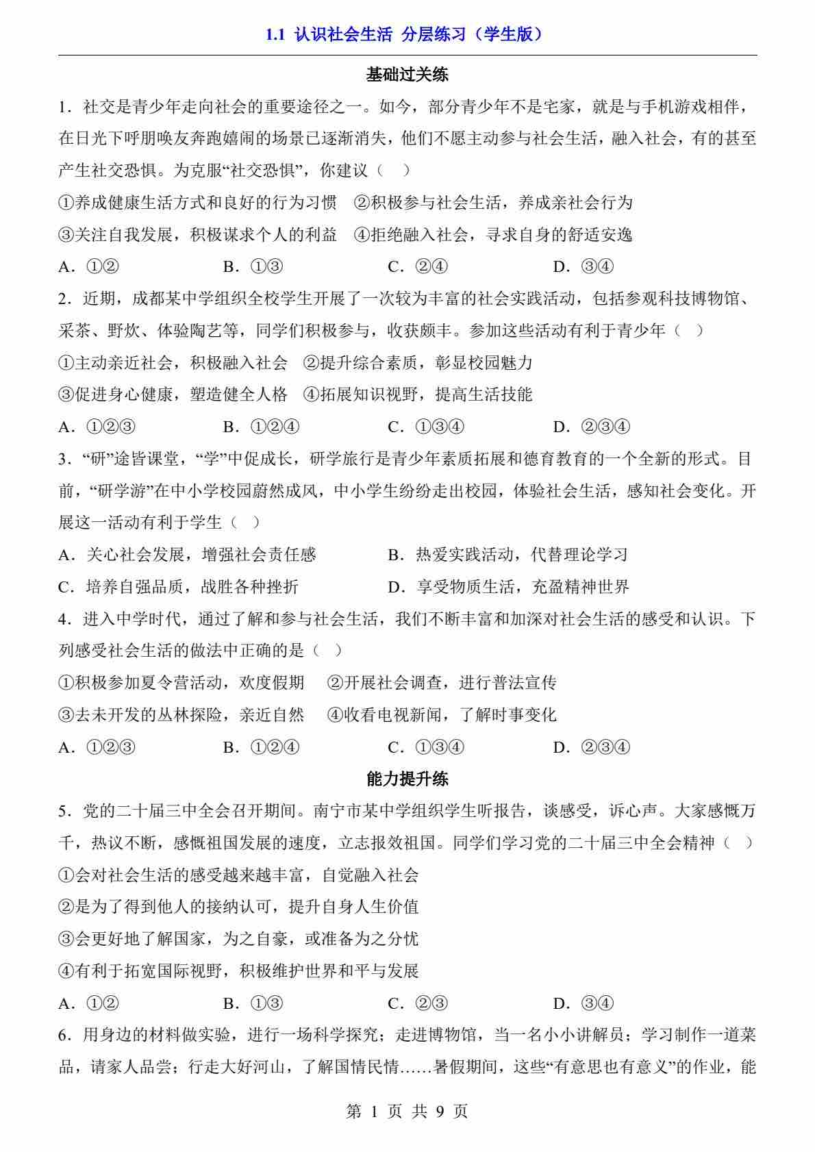 1.1 认识社会生活(分层练习)11
