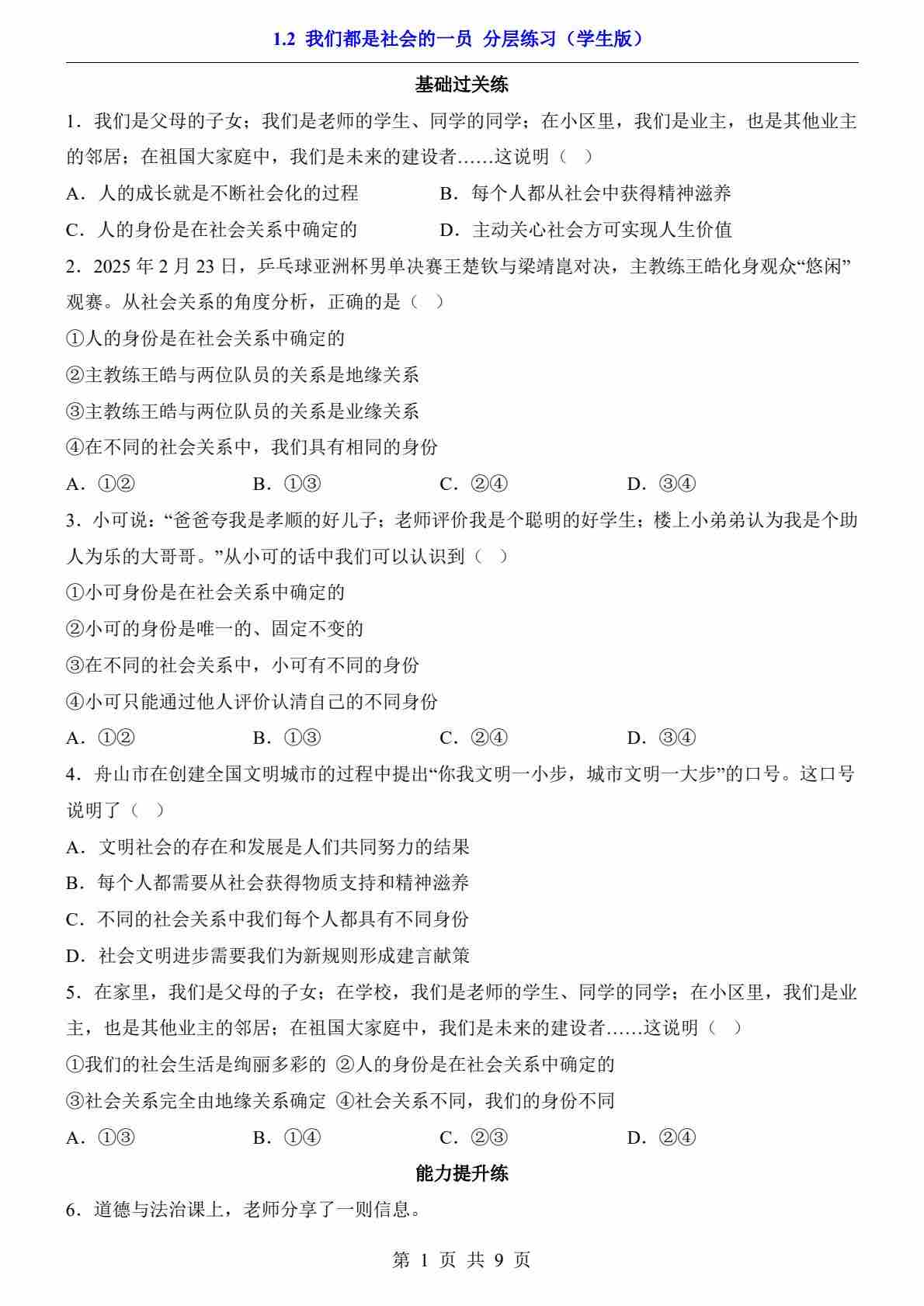 1.2 我们都是社会的一员(分层练习)23