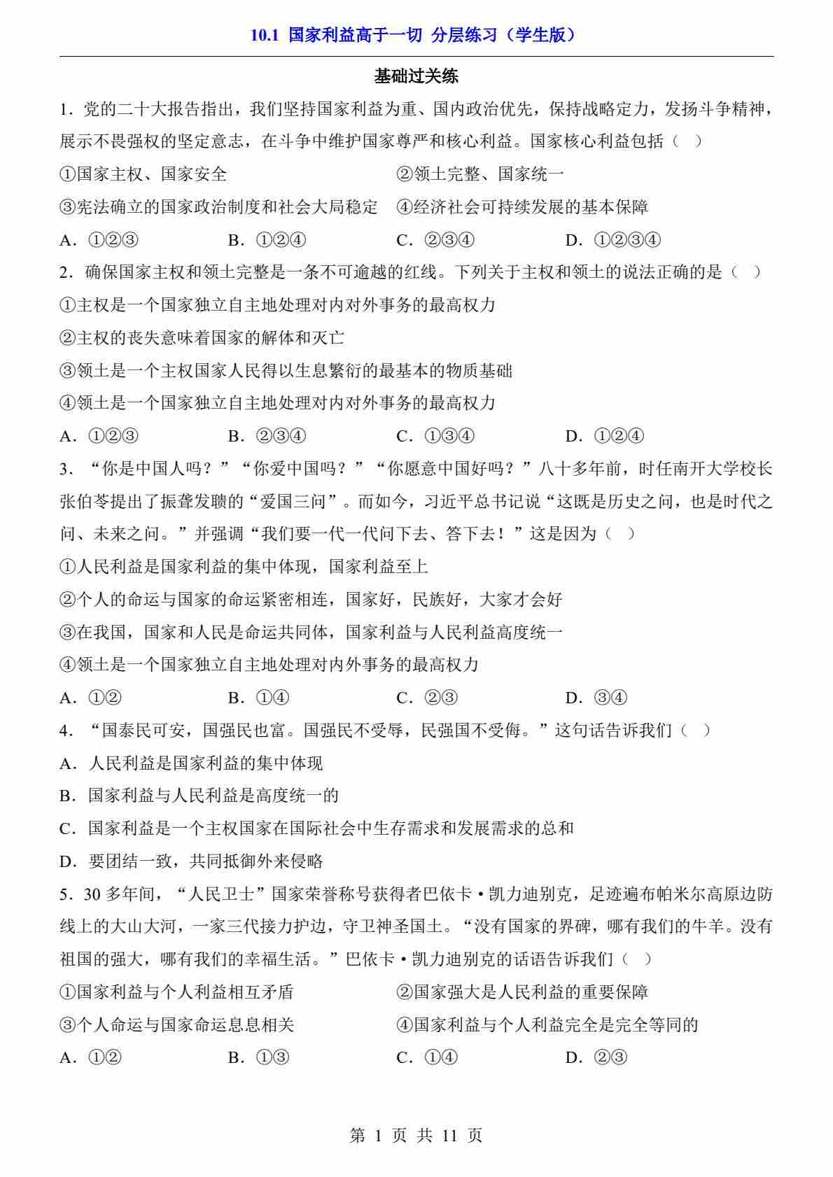 10.1 国家利益高于一切(分层练习)77