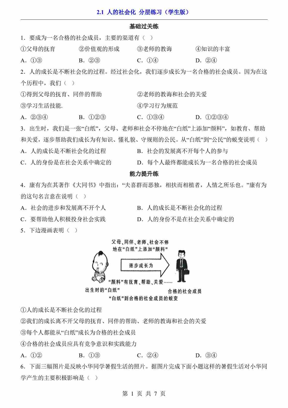 2.1 人的社会化(分层练习)23
