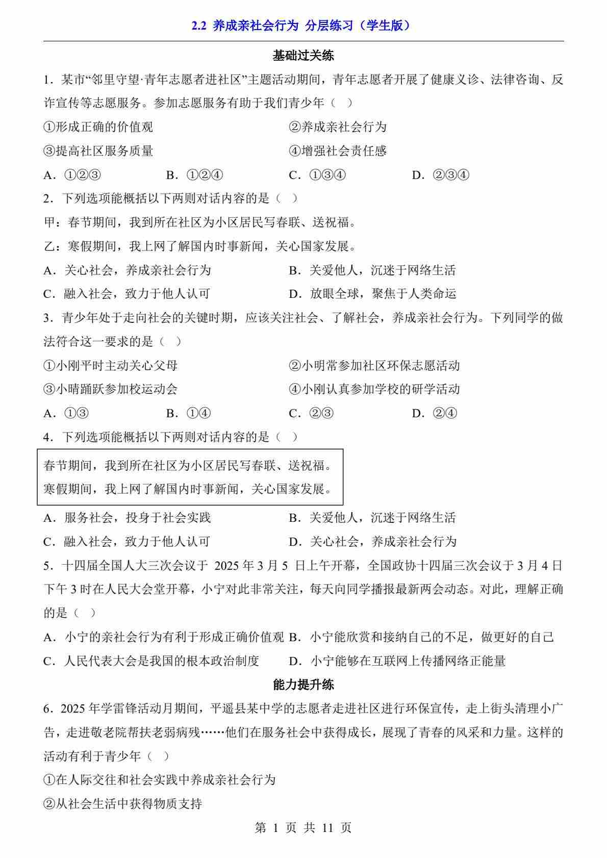 2.2 养成亲社会行为(分层练习)00