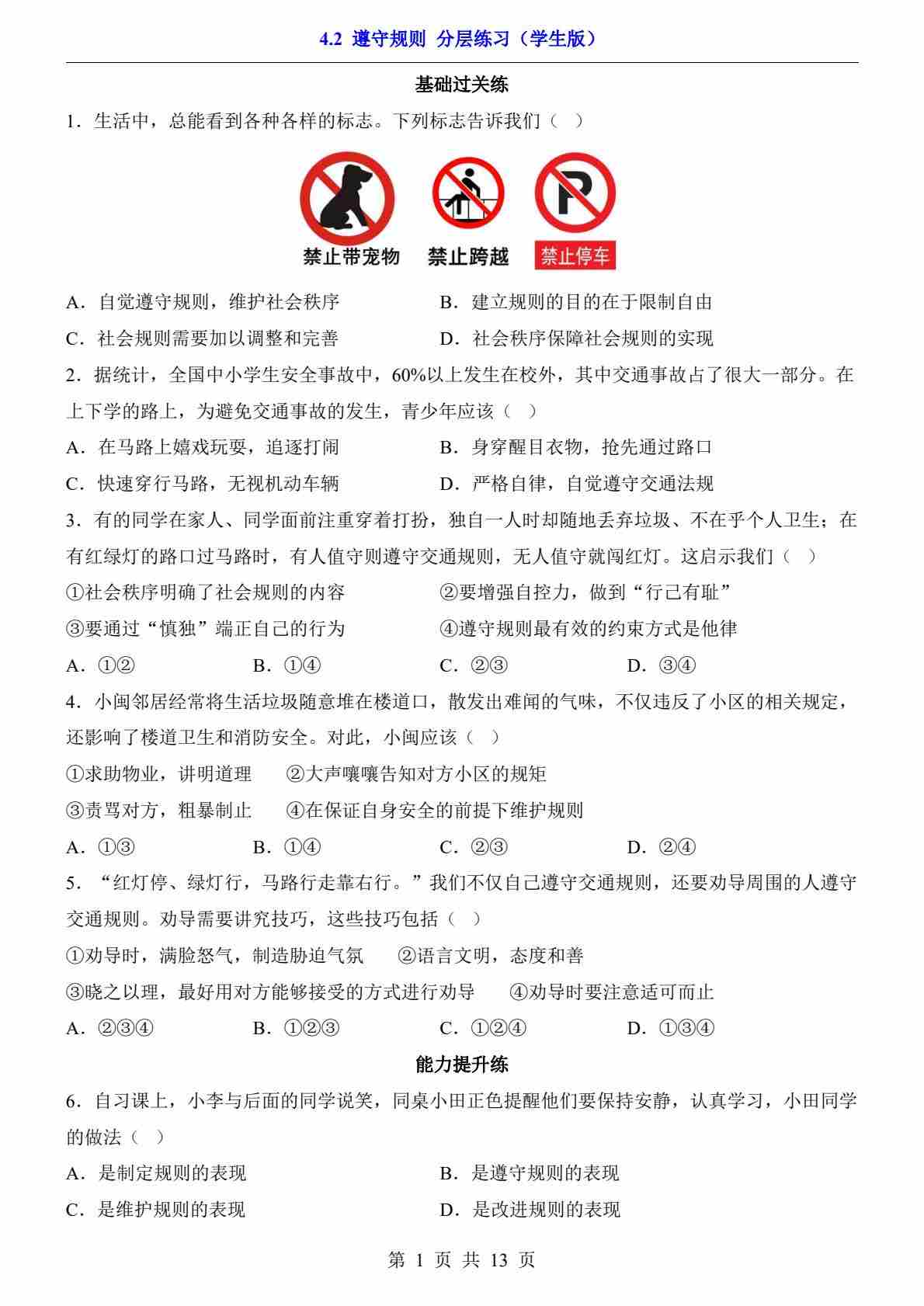 4.2 遵守规则(分层练习)01