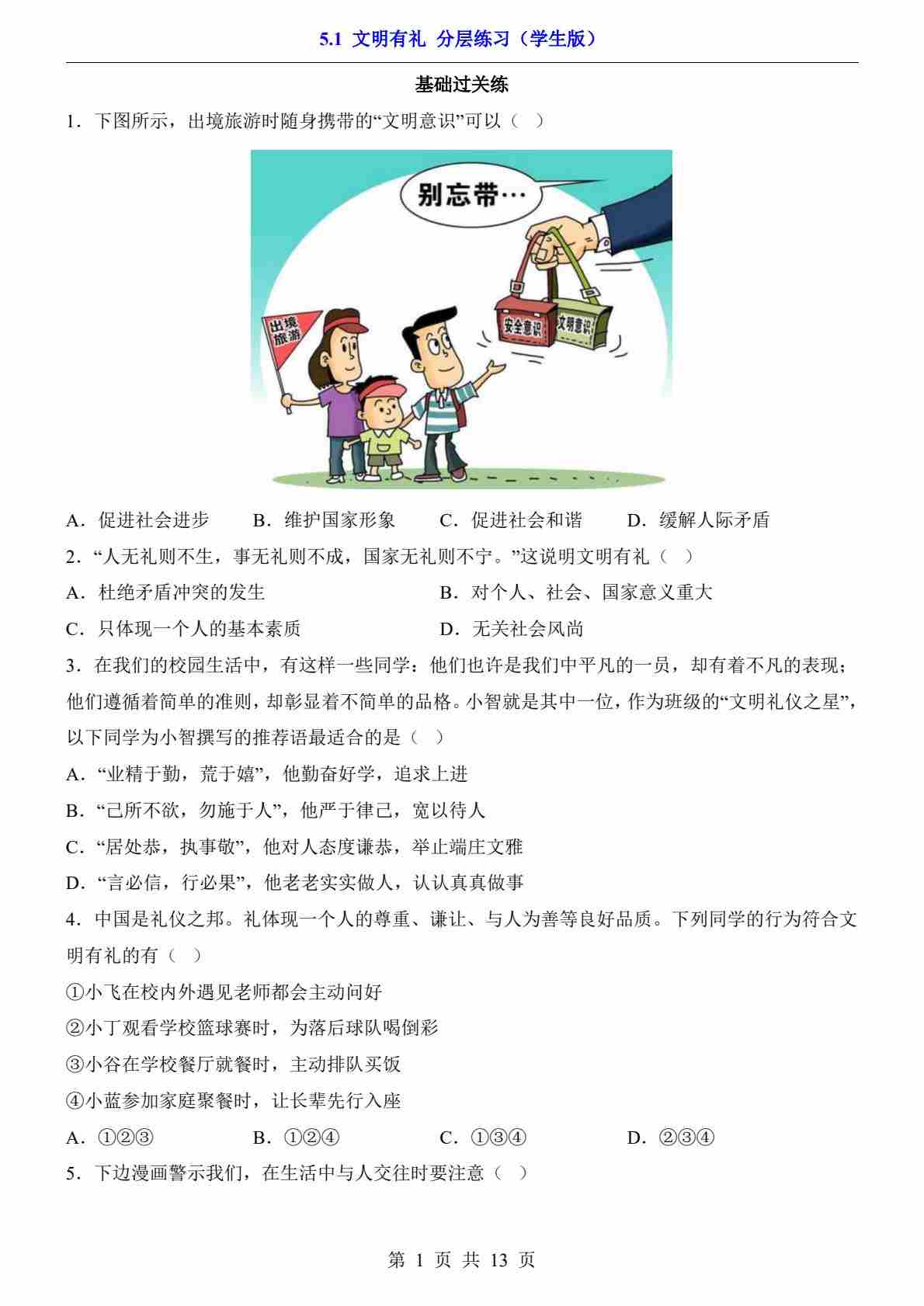 5.1 文明有礼(分层练习)02