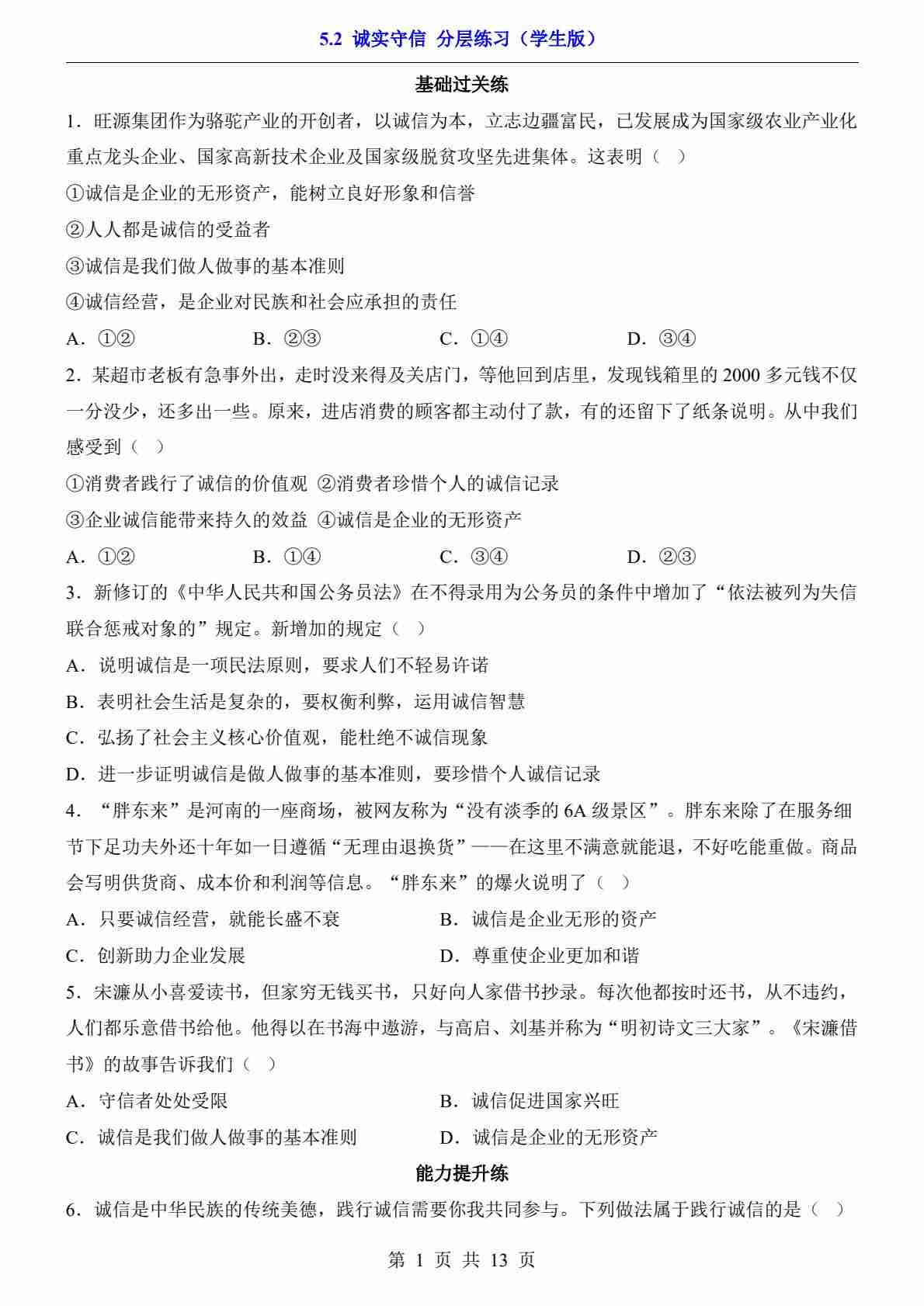 5.2 诚实守信(分层练习)03