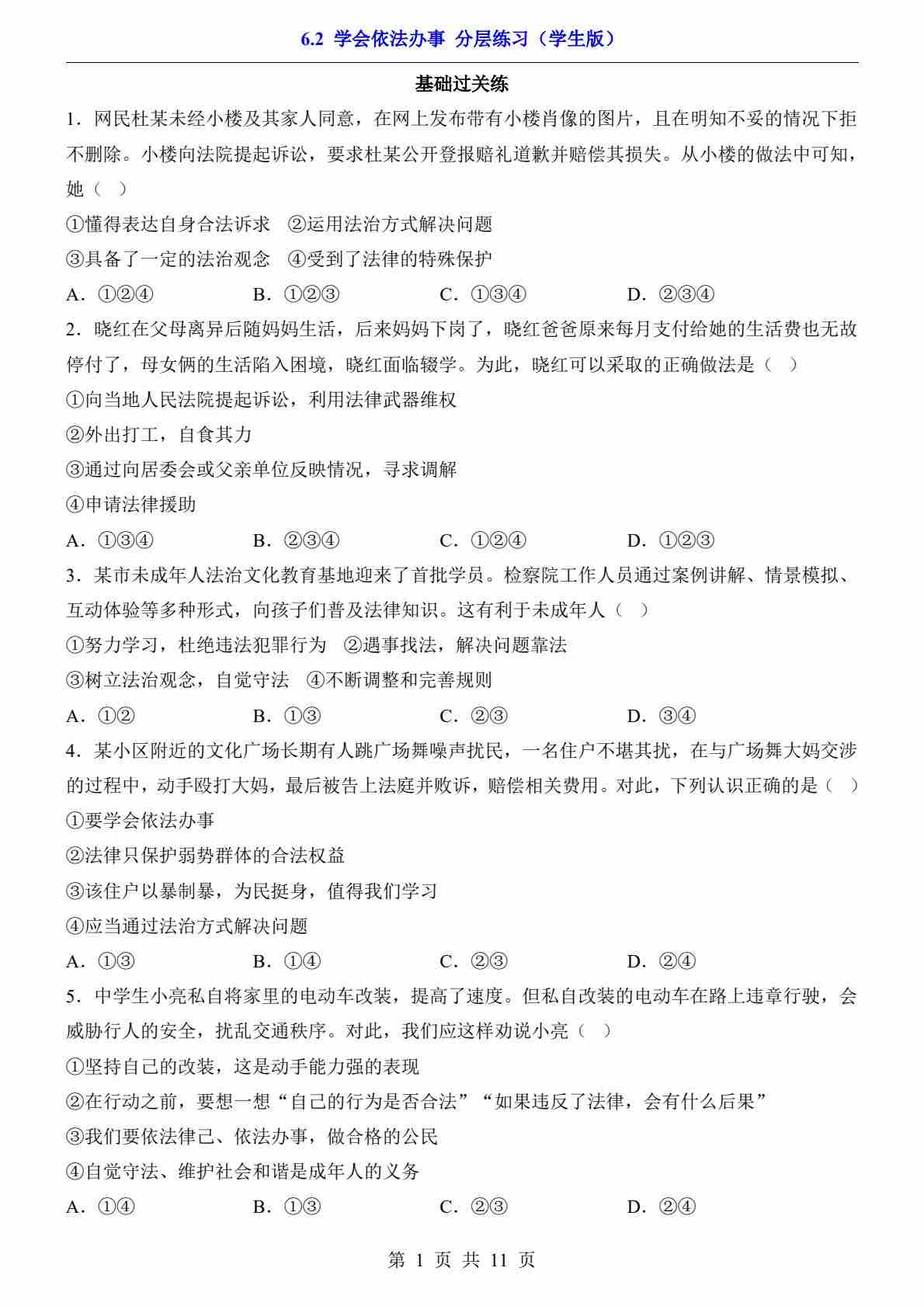 6.2 学会依法办事(分层练习)00