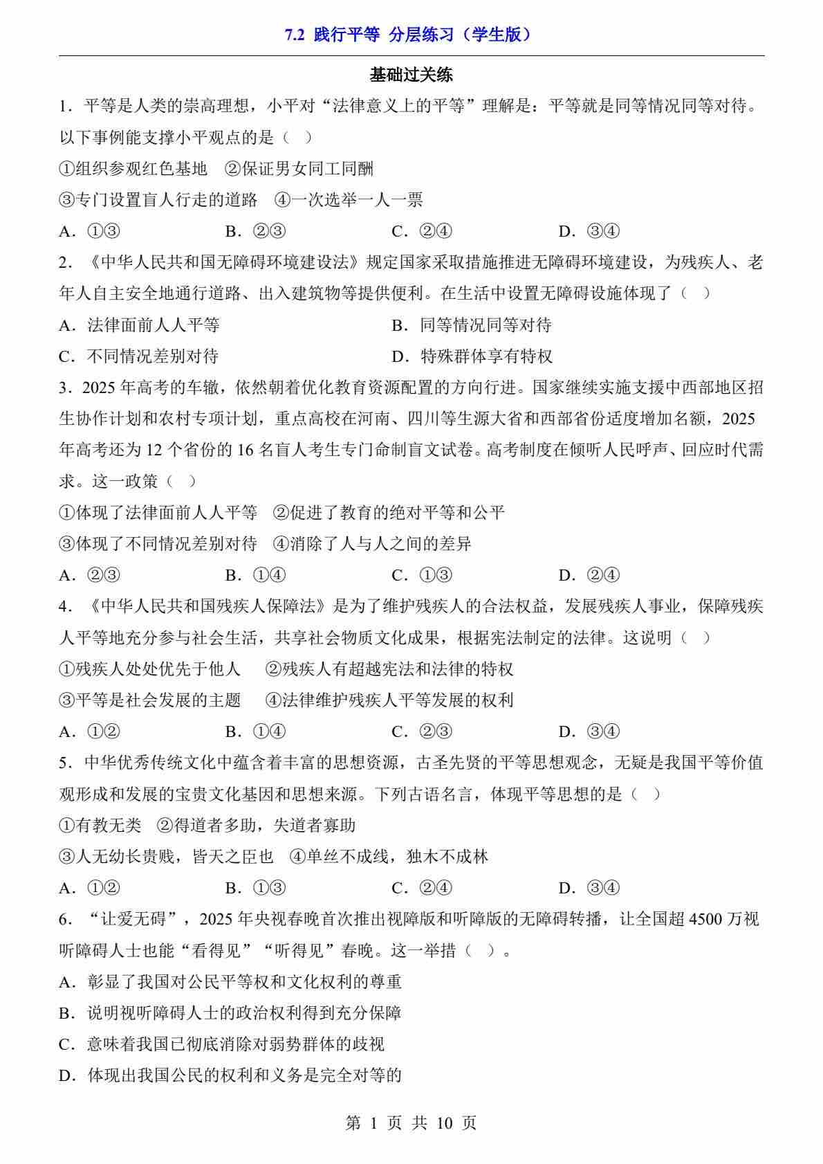 7.2 践行平等(分层练习)99