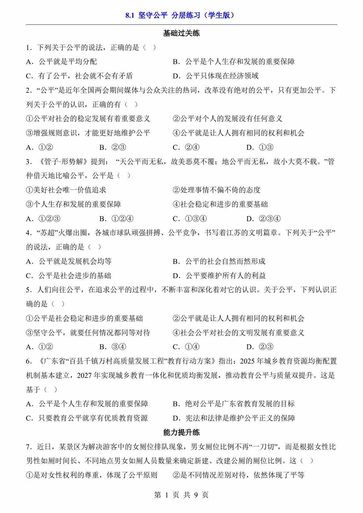 8.1 坚守公平(分层练习)33
