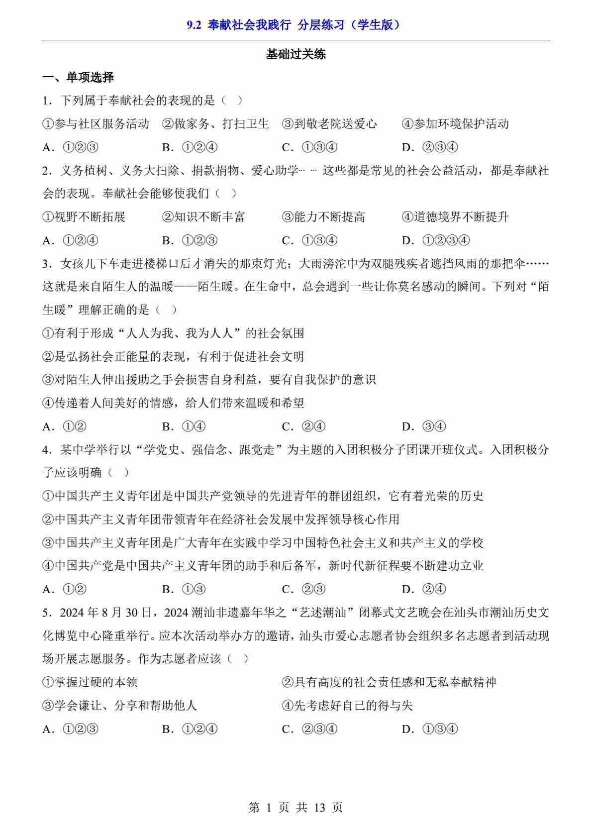 9.2 奉献社会我践行(分层练习)66