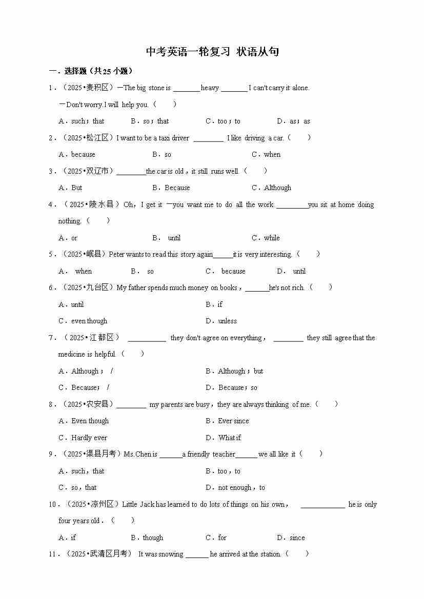 2026年中考英语一轮复习 状语从句(含答案解析)33