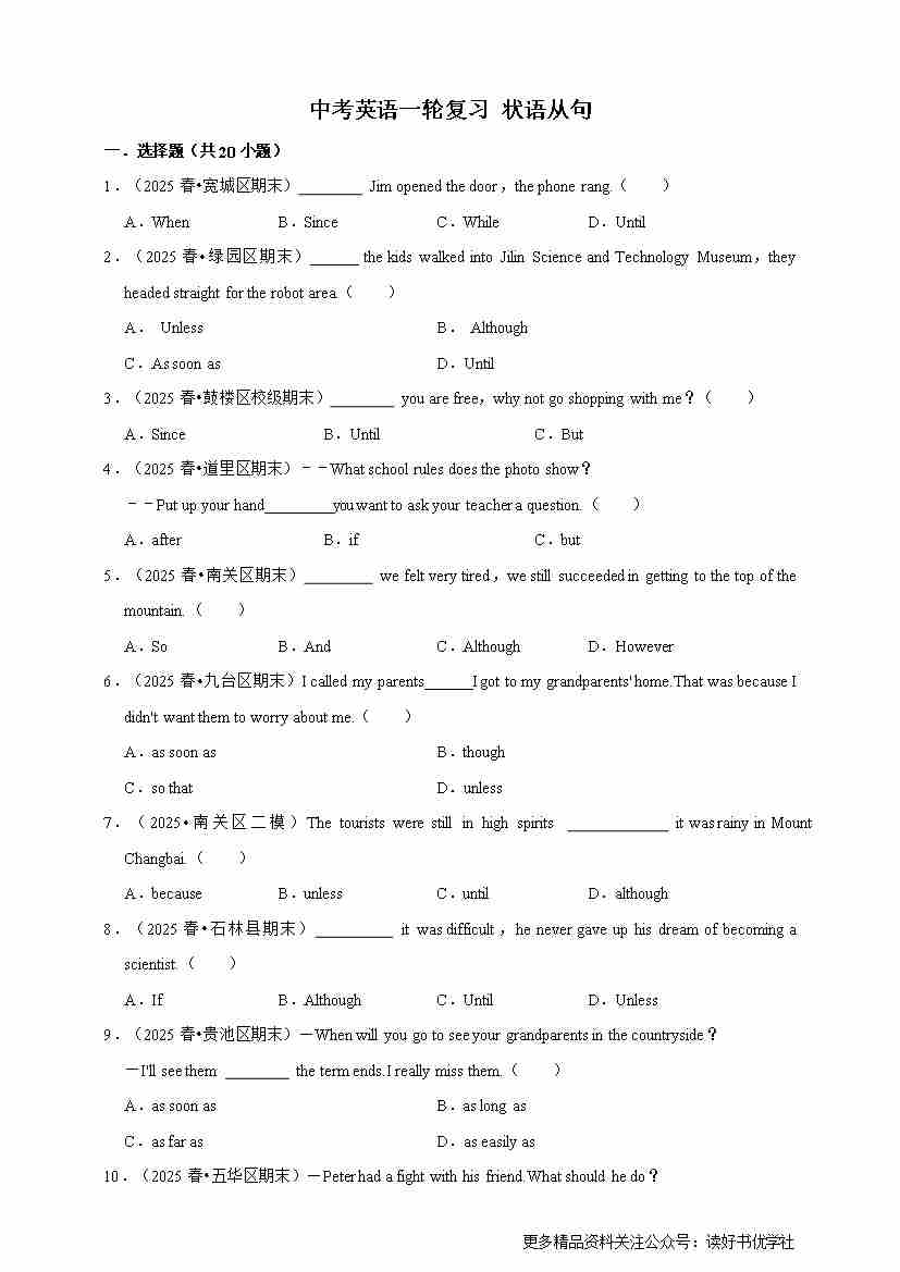 2026年中考英语一轮复习 状语从句(含答案解析)555