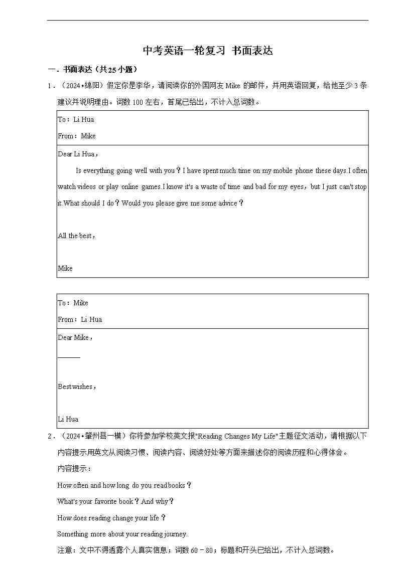 2026年中考英语一轮复习 书面表达(含答案解析)88