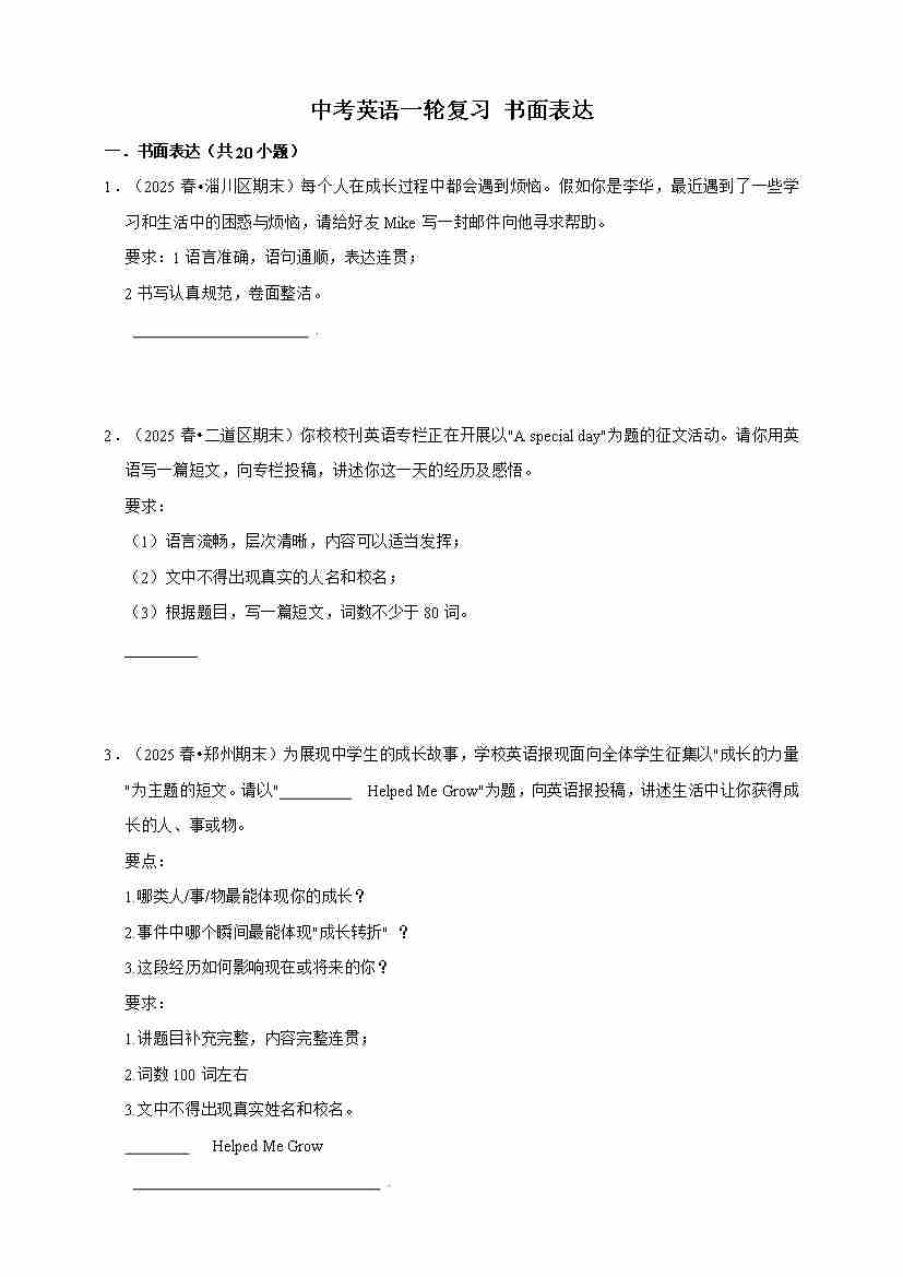 2026年中考英语一轮复习 书面表达(含答案解析)66