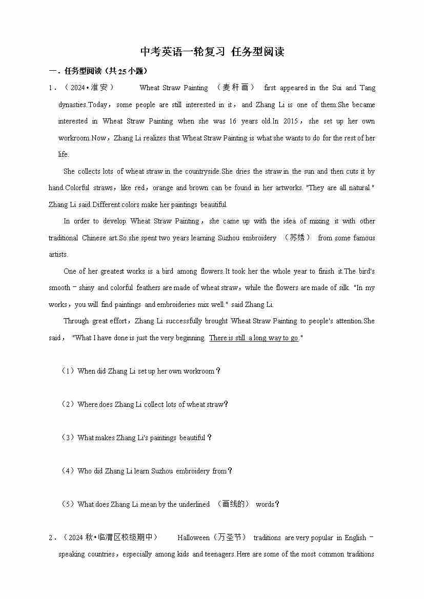 2026年中考英语一轮复习 任务型阅读(含答案解析)