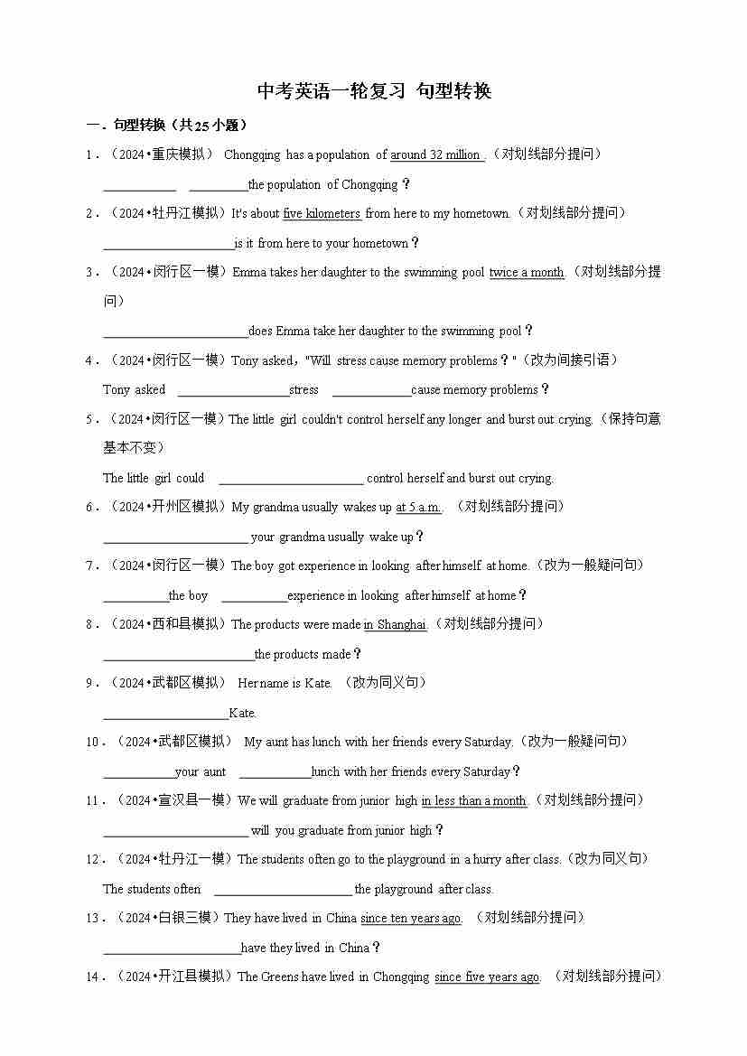 2026年中考英语一轮复习 句型转换(含答案解析)