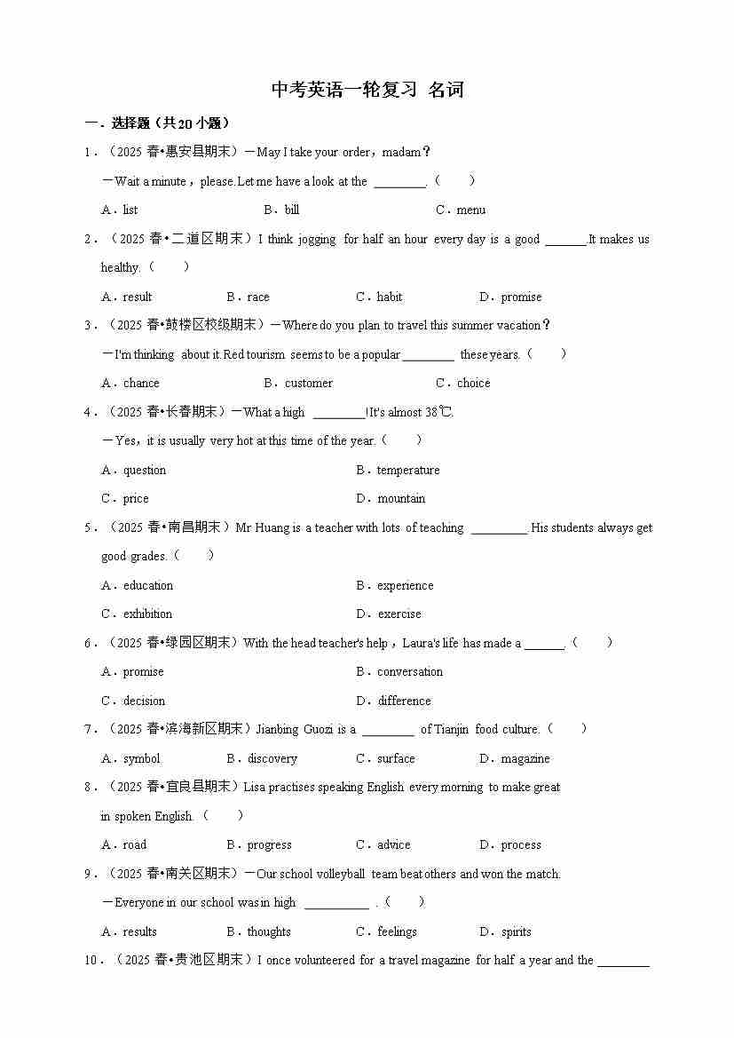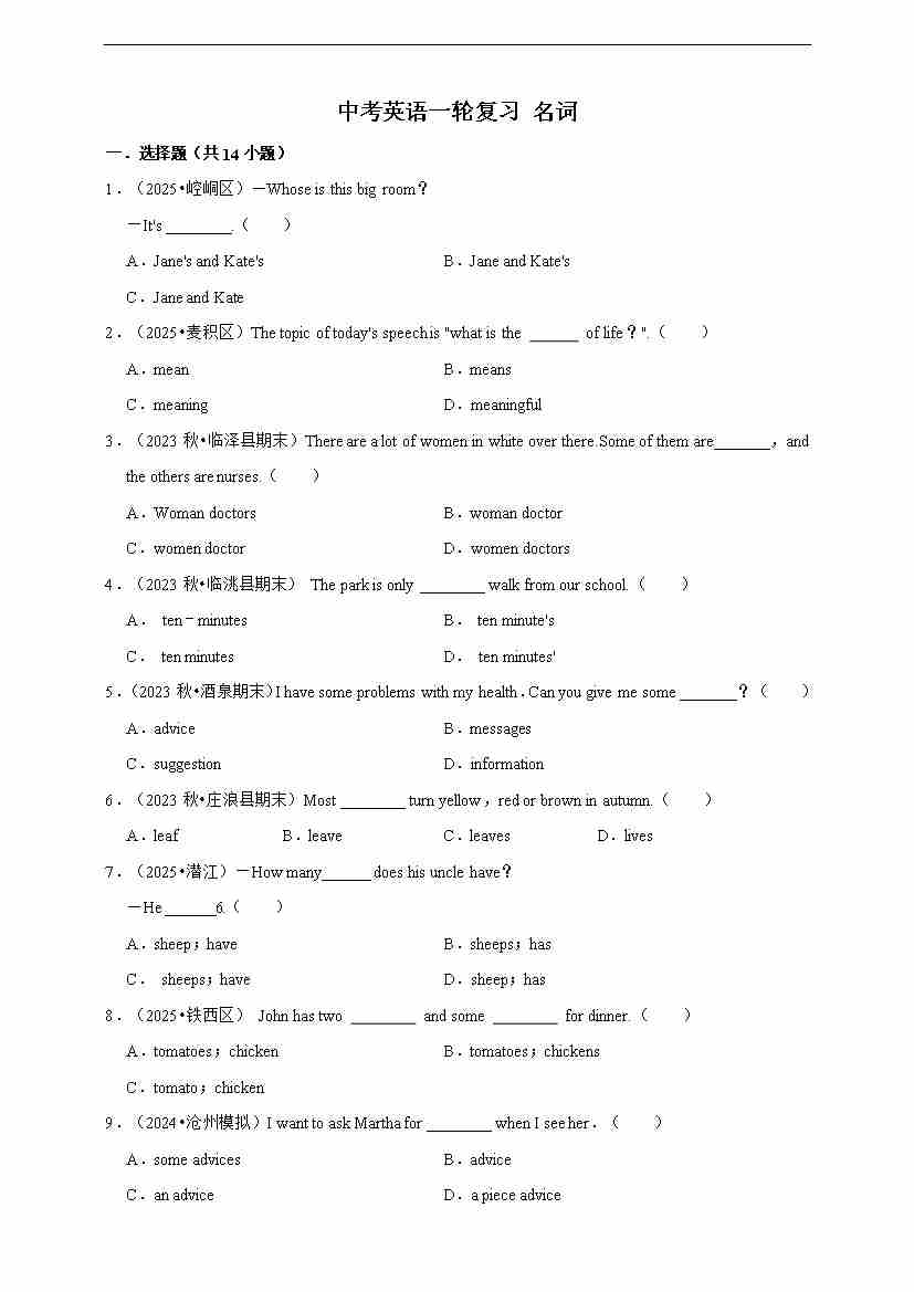 2026年中考英语一轮复习 名词(含答案解析)04
