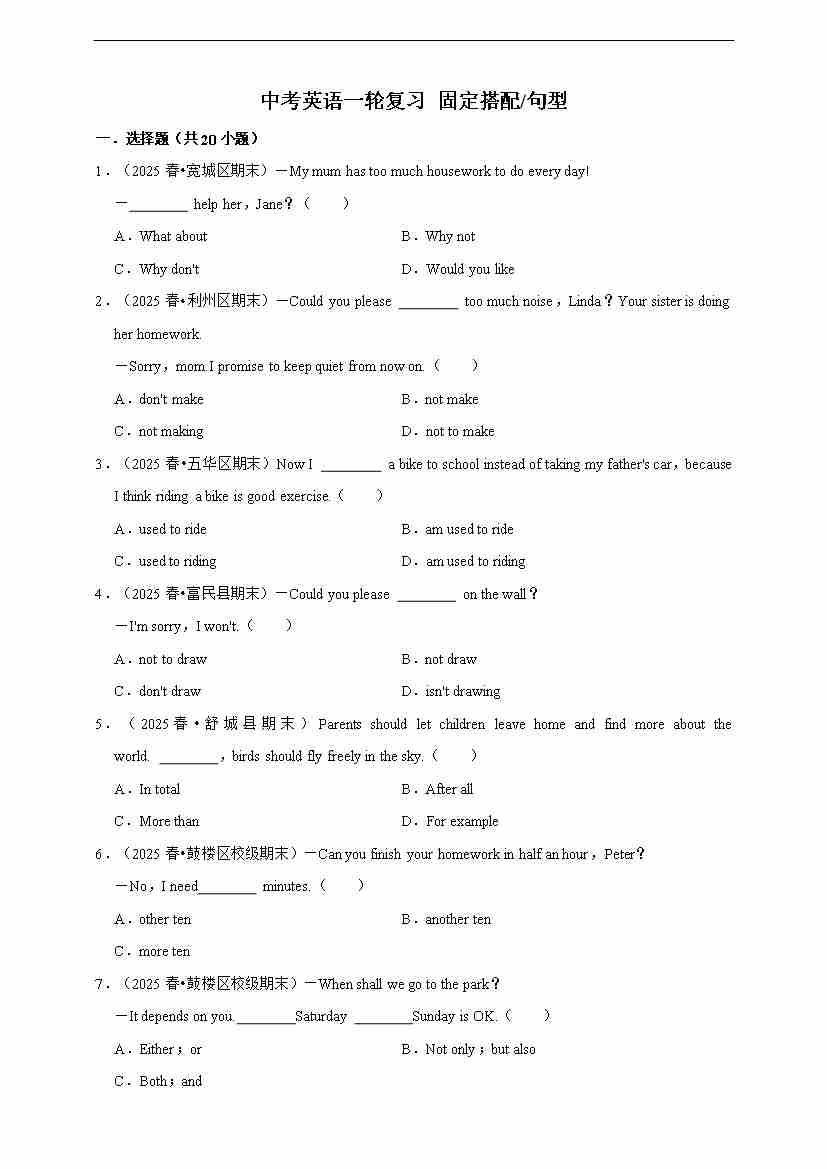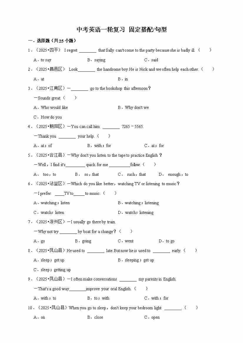 2026年中考英语一轮复习 固定搭配句型(含答案解析)000