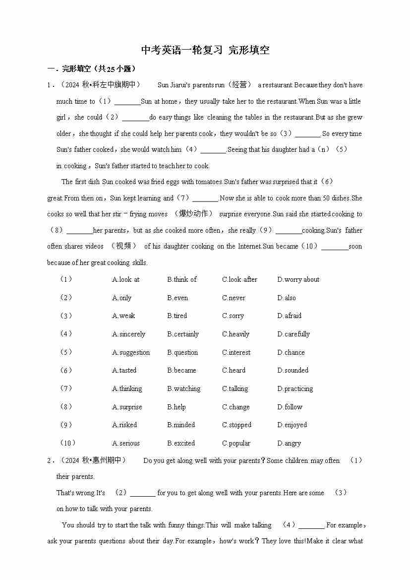 2026年中考英语一轮复习 完形填空(含答案解析)