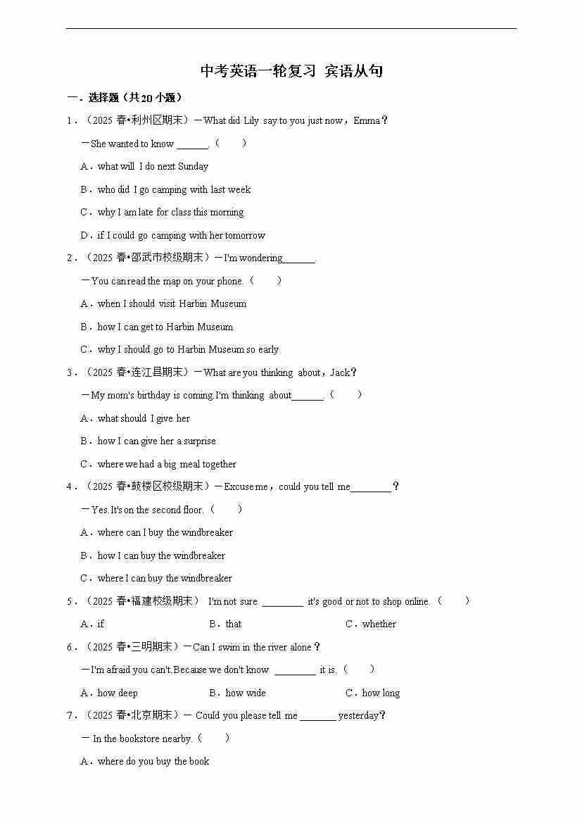 2026年中考英语一轮复习 选择题(含答案解析)