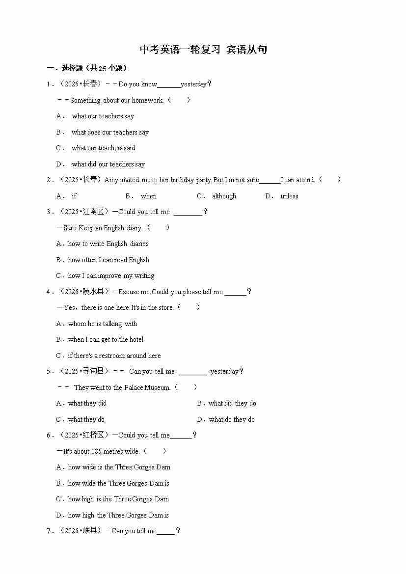 2026年中考英语一轮复习 宾语从句(含答案解析)0066