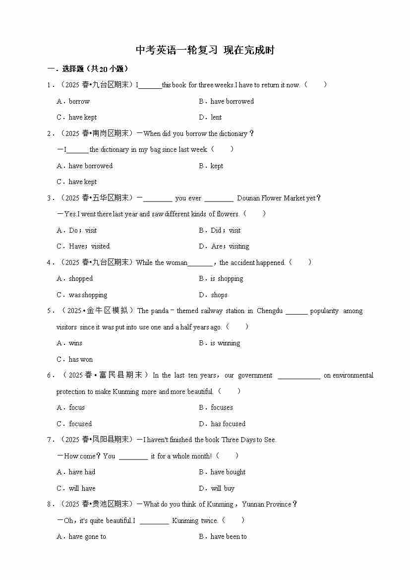 2026年中考英语一轮复习 现在完成时(含答案解析)
