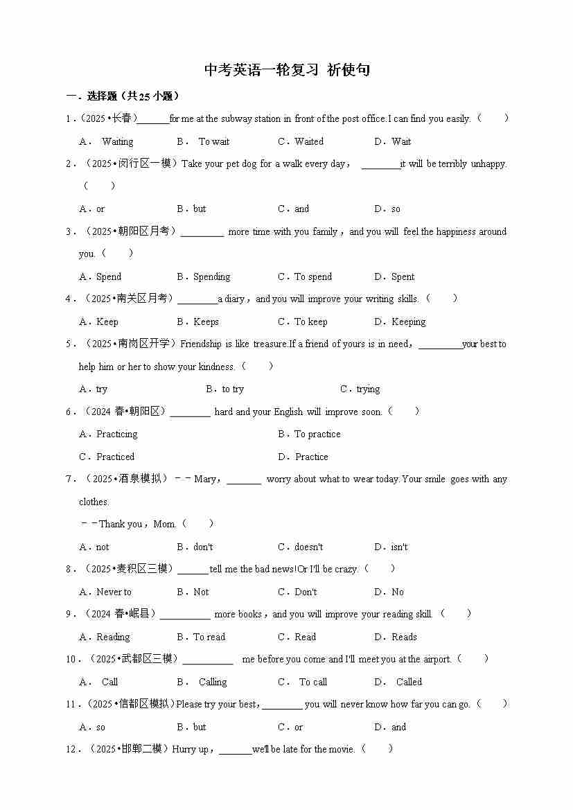 2026年中考英语一轮复习 祈使句(含答案解析)