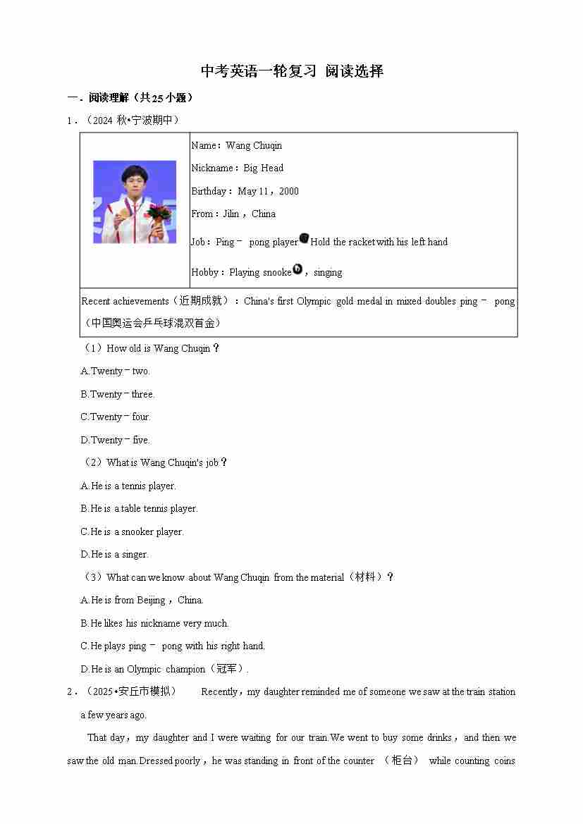 2026年中考英语一轮复习 阅读选择(含答案解析)