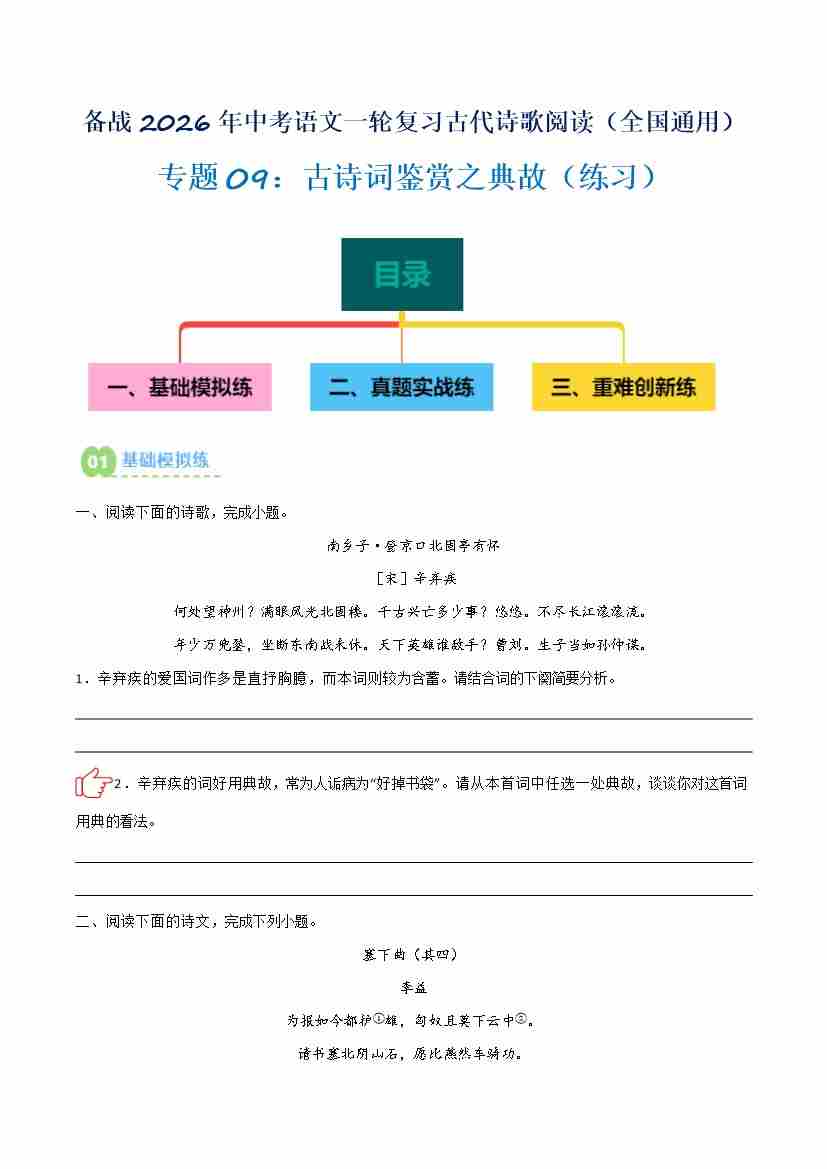专题09:古诗词鉴赏之典故(练习)原卷版
