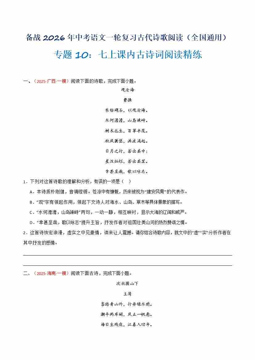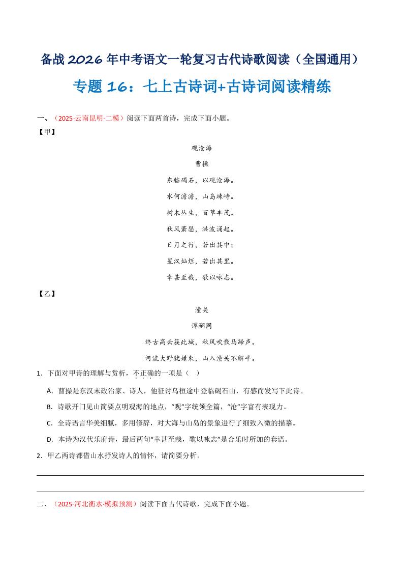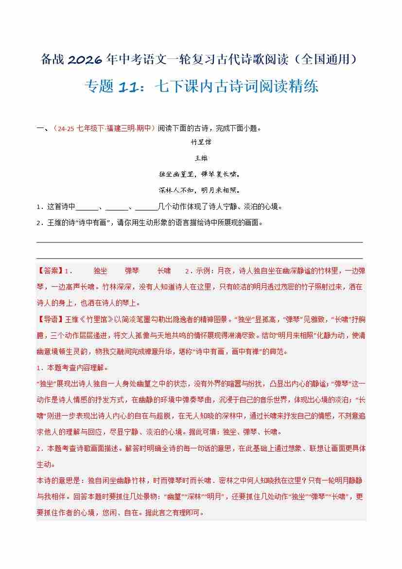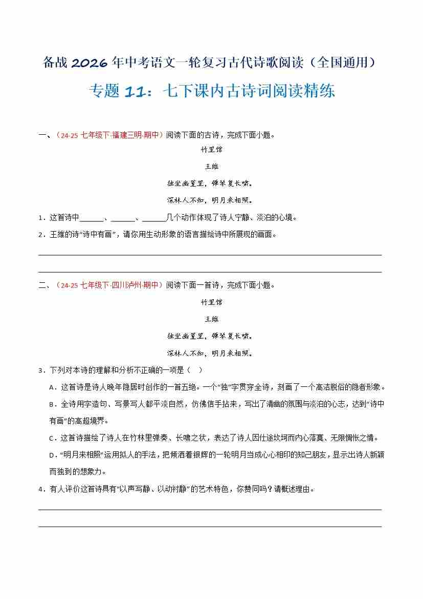 专题16:七上古诗词古诗词阅读精练(原卷版)