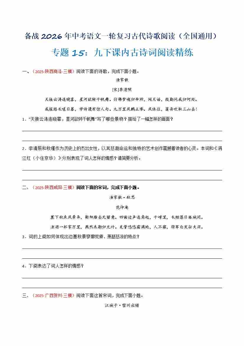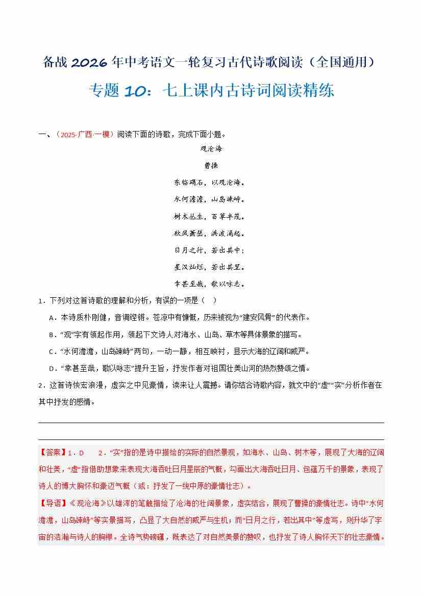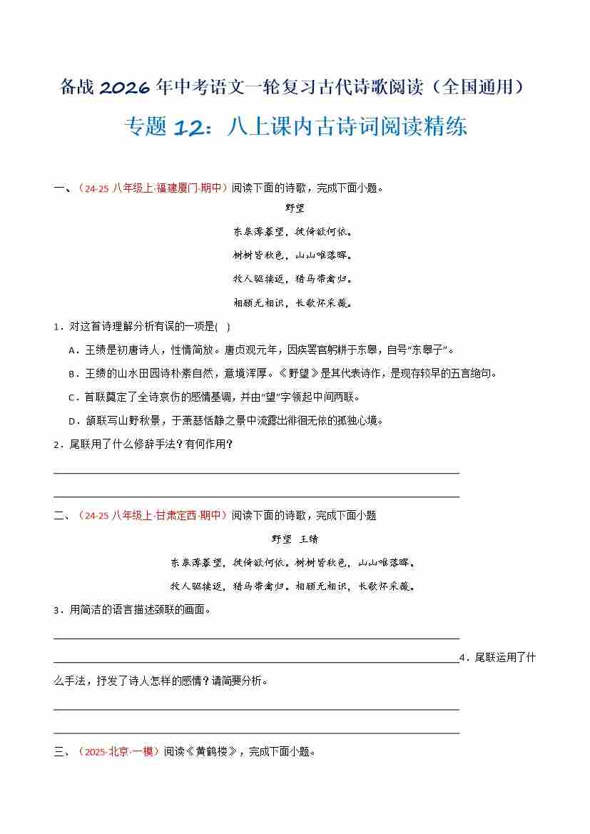 专题16:七上古诗词古诗词阅读精练(原卷版)