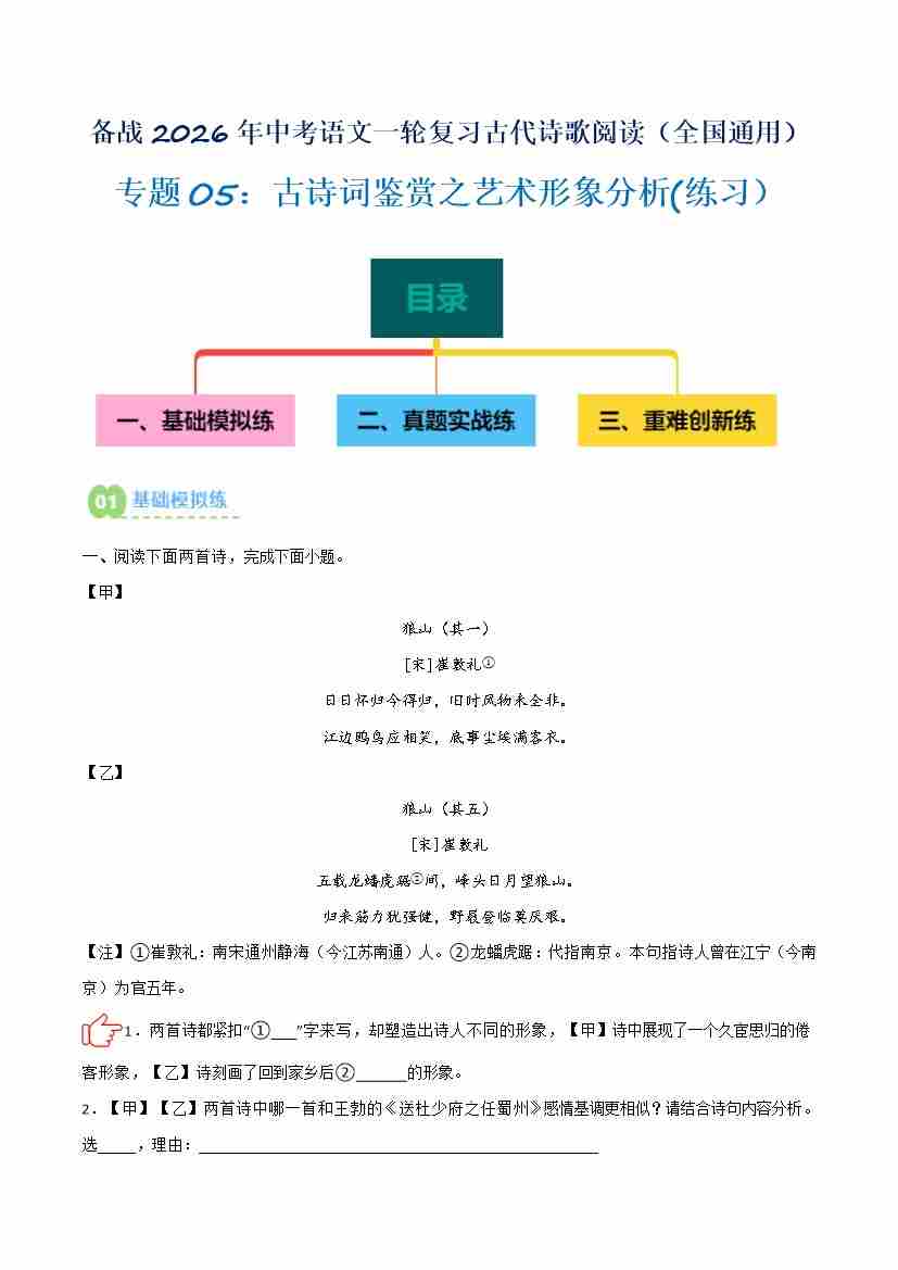 专题15:九下课内古诗词阅读精练(解析版)