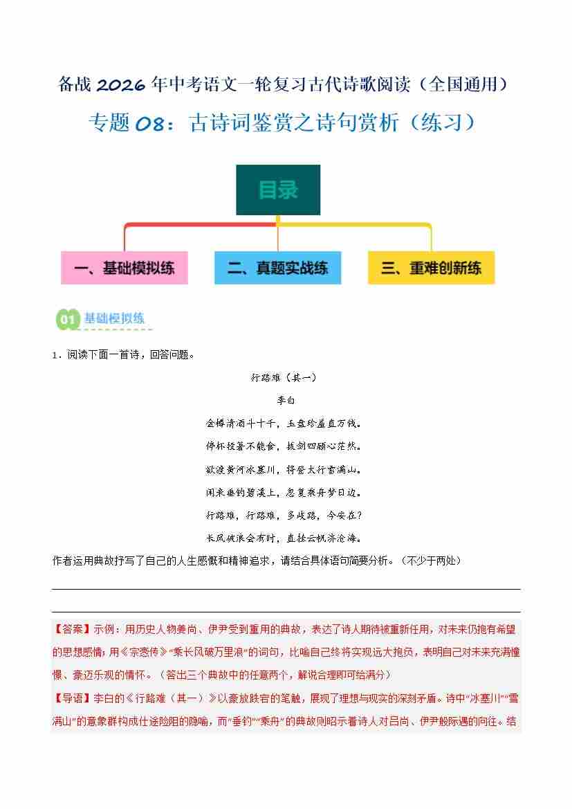 专题08:古诗词鉴赏之诗句赏析(练习)解析版