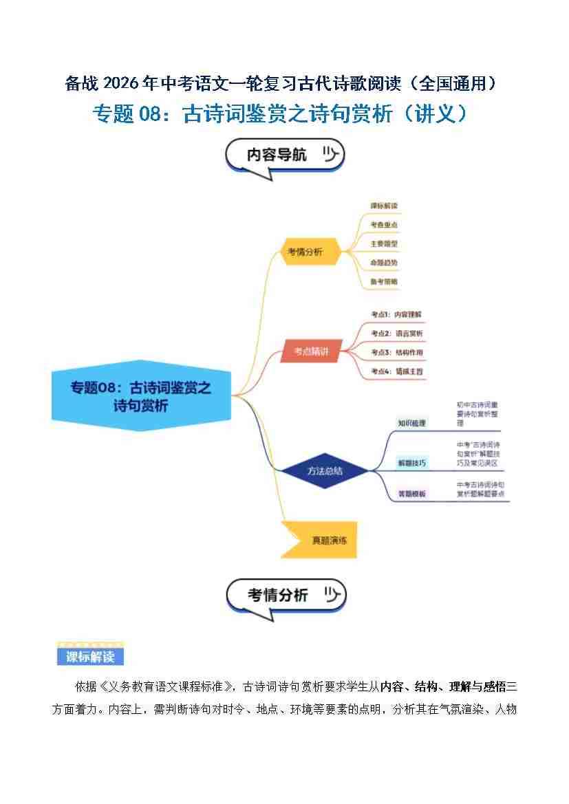 专题08:古诗词鉴赏之诗句赏析(讲义)解析版