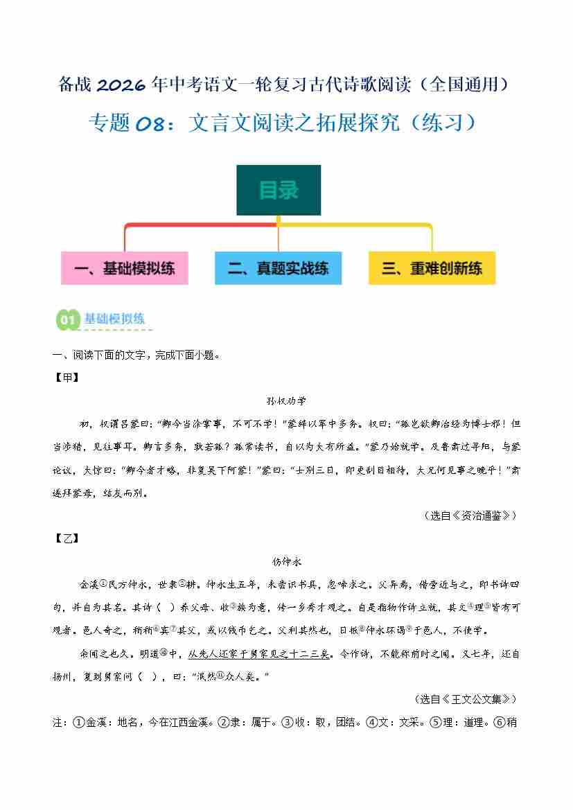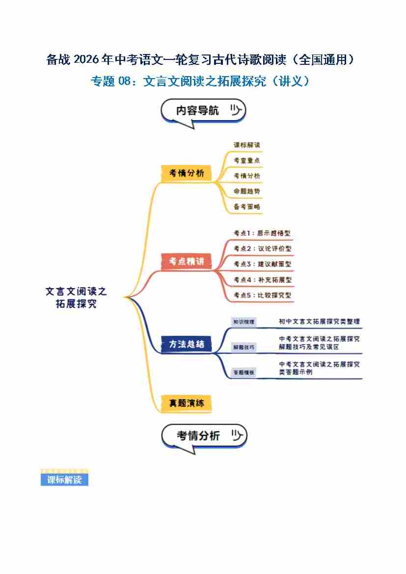 专题08:文言文阅读之拓展探究(讲义)原卷版