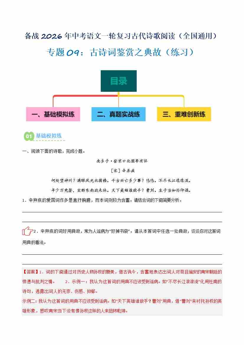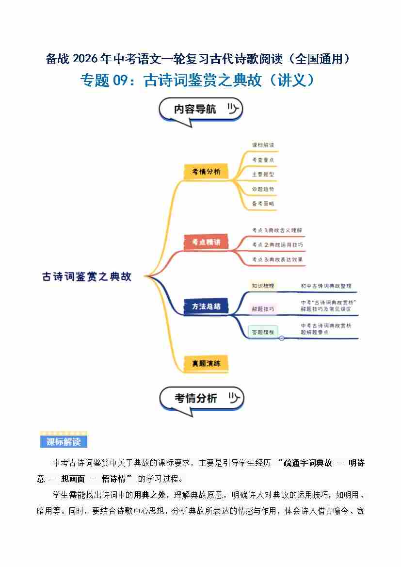 专题09:古诗词鉴赏之典故(讲义)解析版