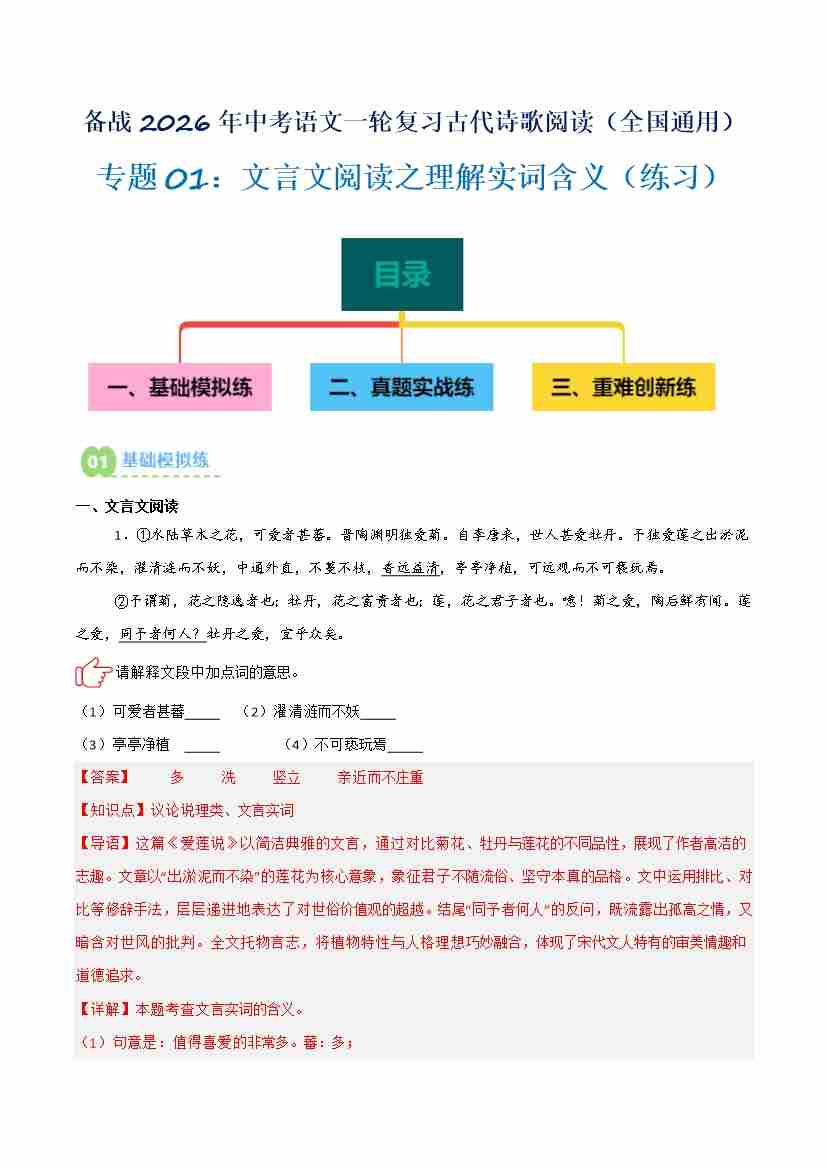 专题01:文言文阅读之理解实词含义(练习)解析版