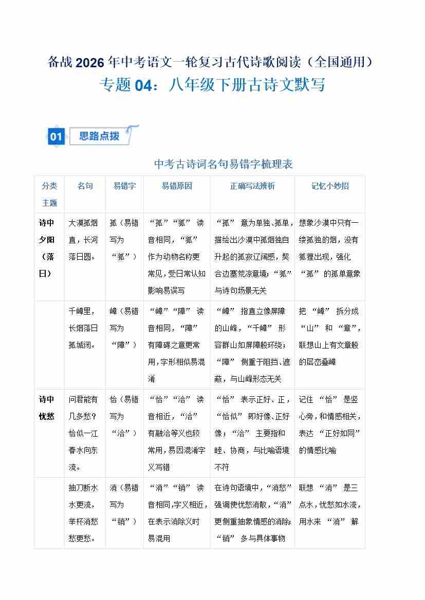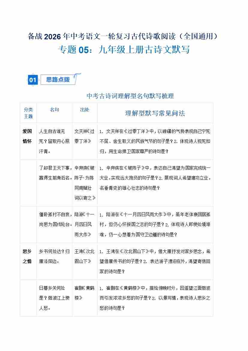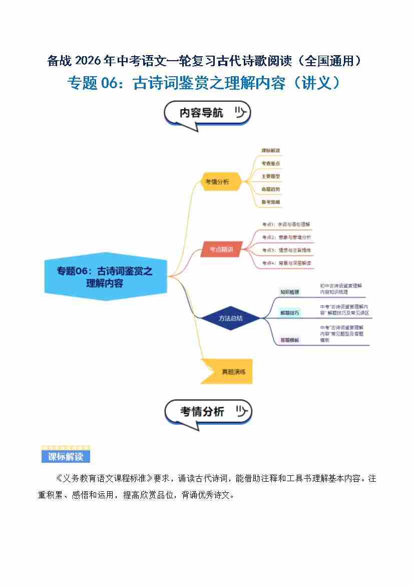 专题06:古诗词鉴赏之理解内容(讲义)原卷版
