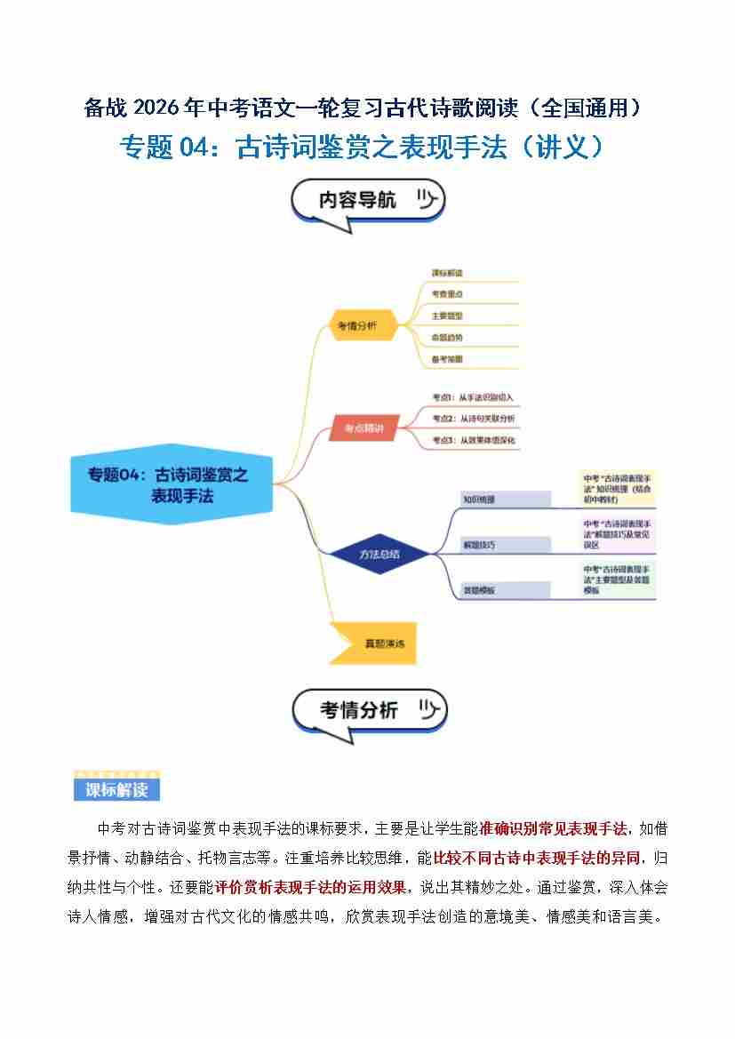 专题04:古诗词鉴赏之表现手法(讲义)解析版